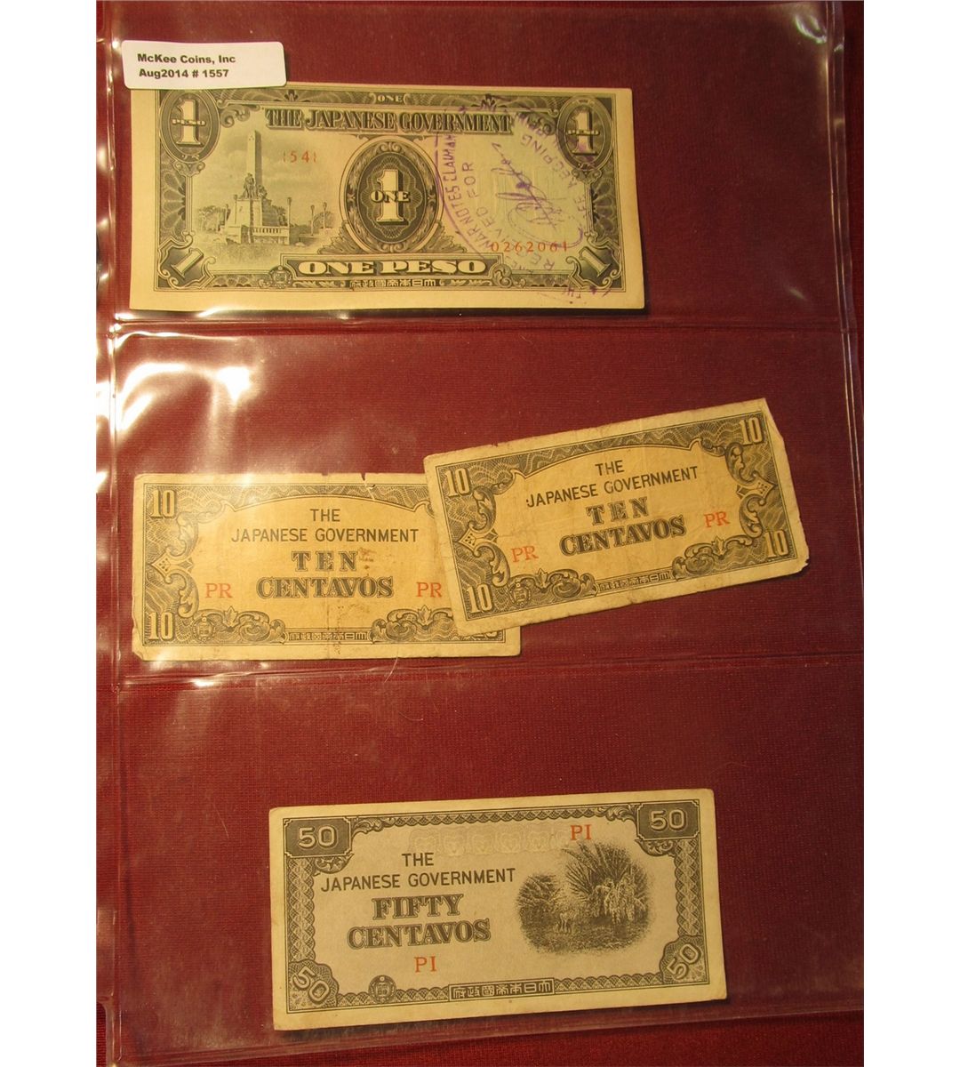 1557. (4) Japanese Occupation of World War II Philippines bank notes.