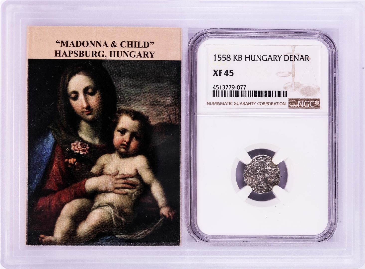 1558 KB Hungary Denar 'Madonna and Child' Coin NGC XF45 w/ Story Box