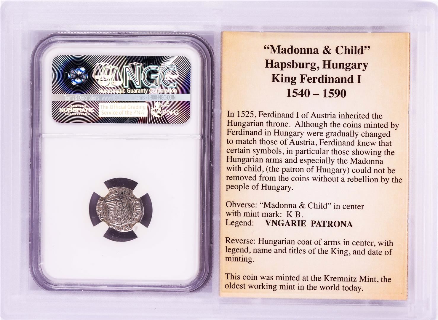 One 1558 KB Hungary Denar 'Madonna and Child' Coin NGC XF45 w/ Story Box. NGC Certified.