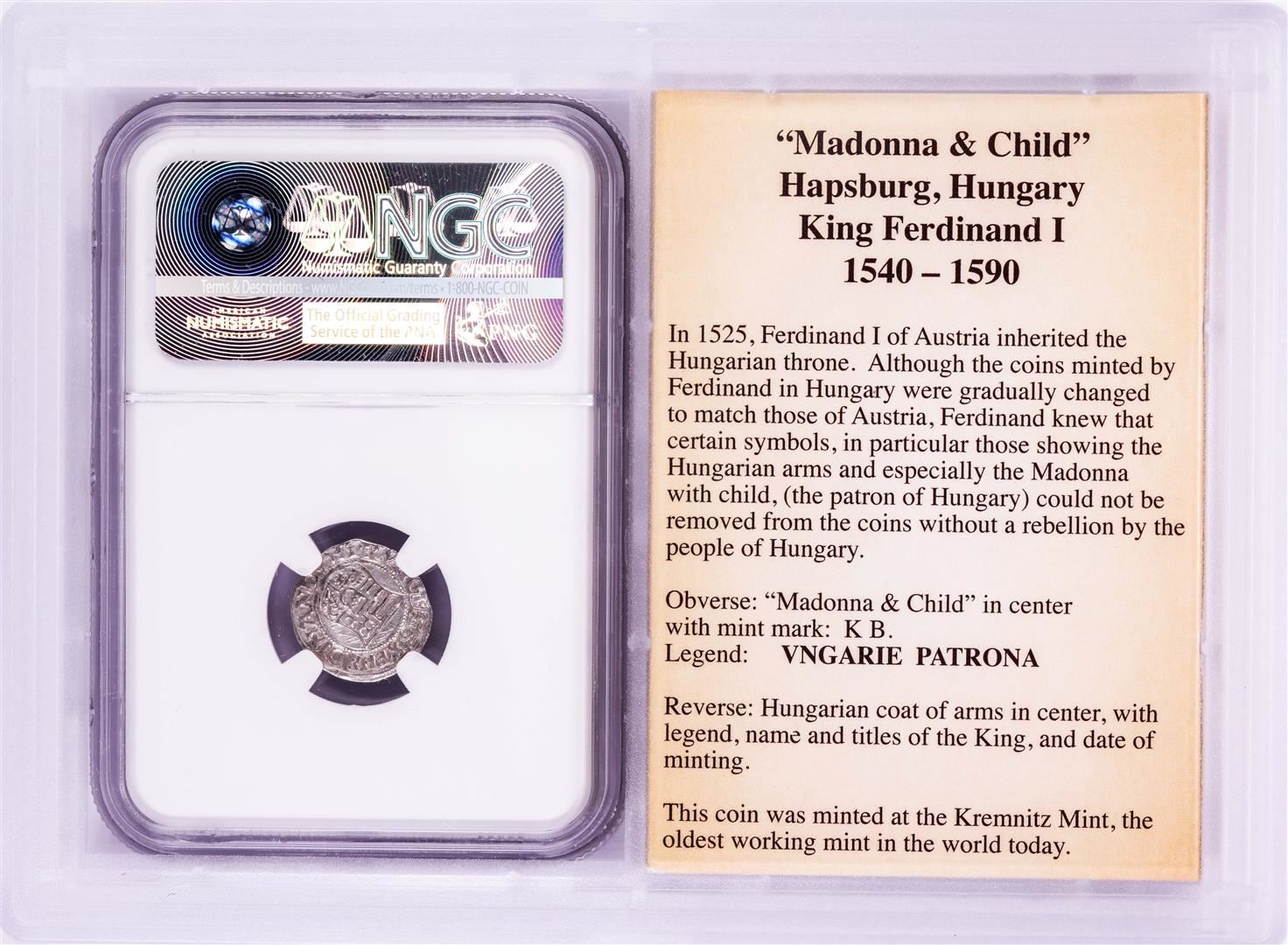 One 1558 KB Hungary Denar 'Madonna and Child' Coin NGC XF45 w/ Story Box. NGC Certified.