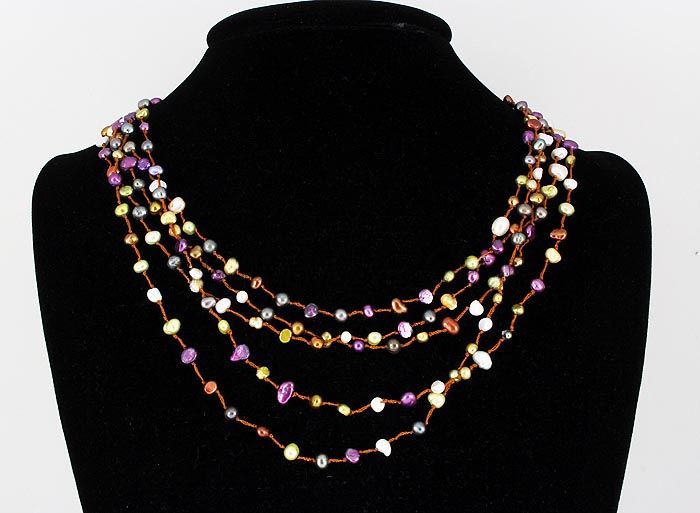 19 inches Multi-color 5 Strand Thread Freshwater Pearl Necklace w/ Botton Lock