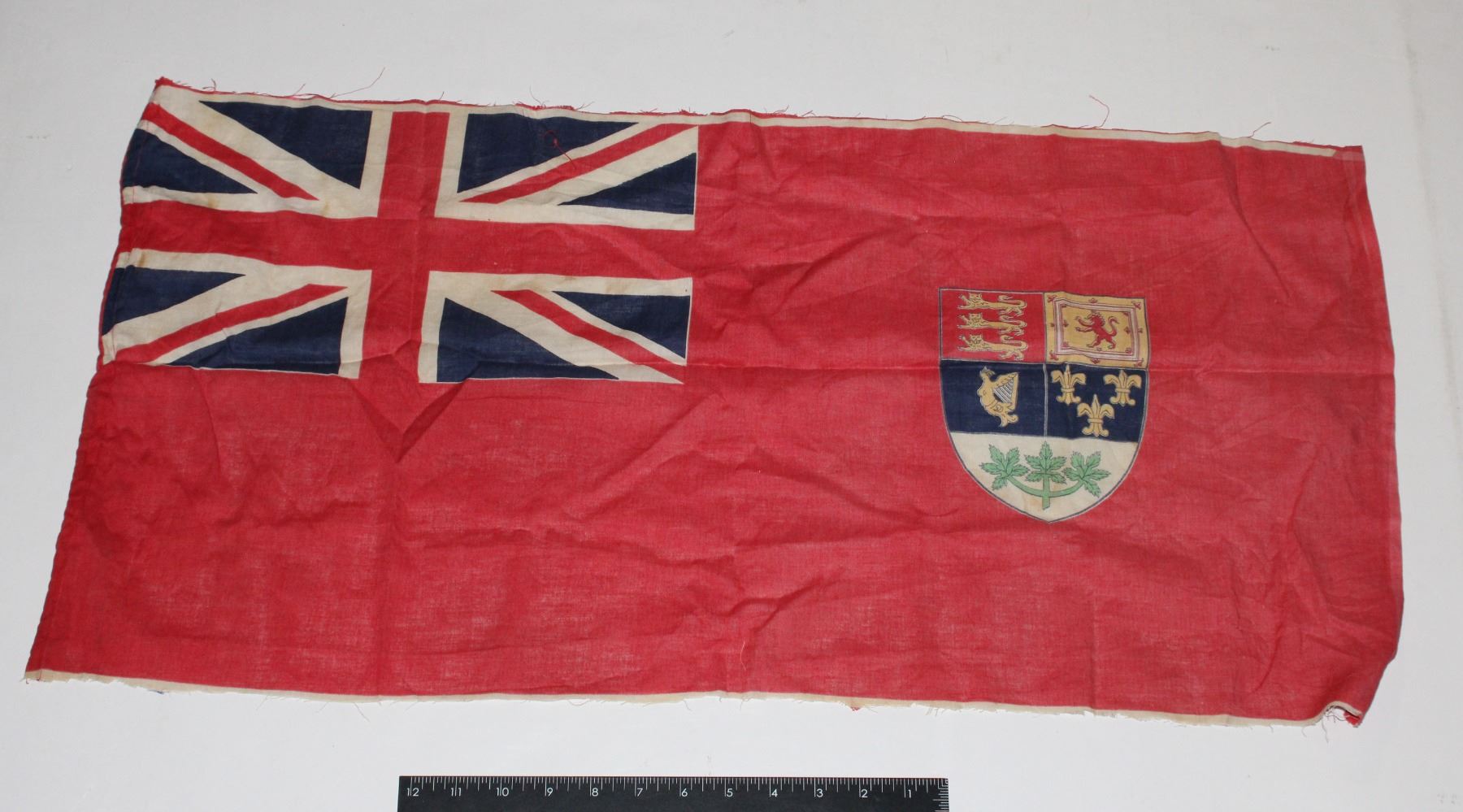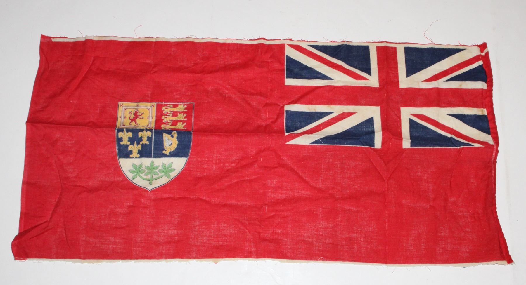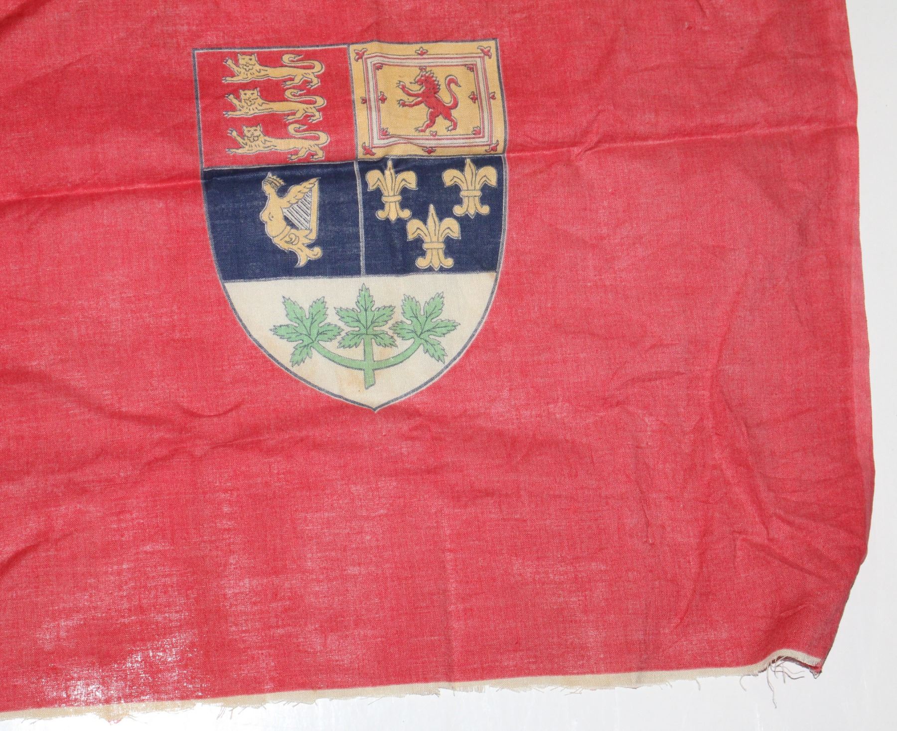 32 X 16 INCHES IN SIZE DOUBLE SIDED WORN FLAG WORLD WAR TWO CANADIAN PATRIOTIC HOME FRONT