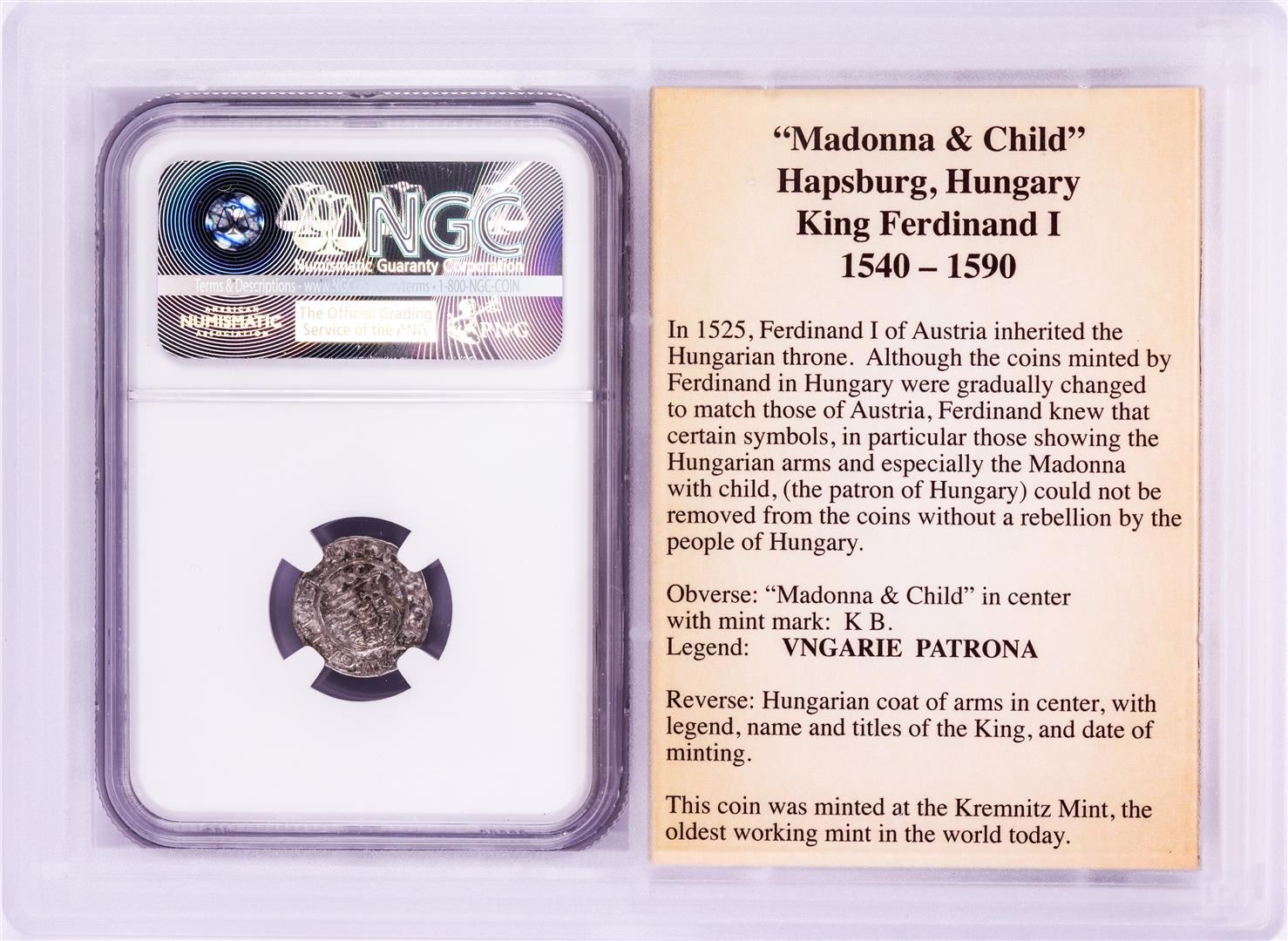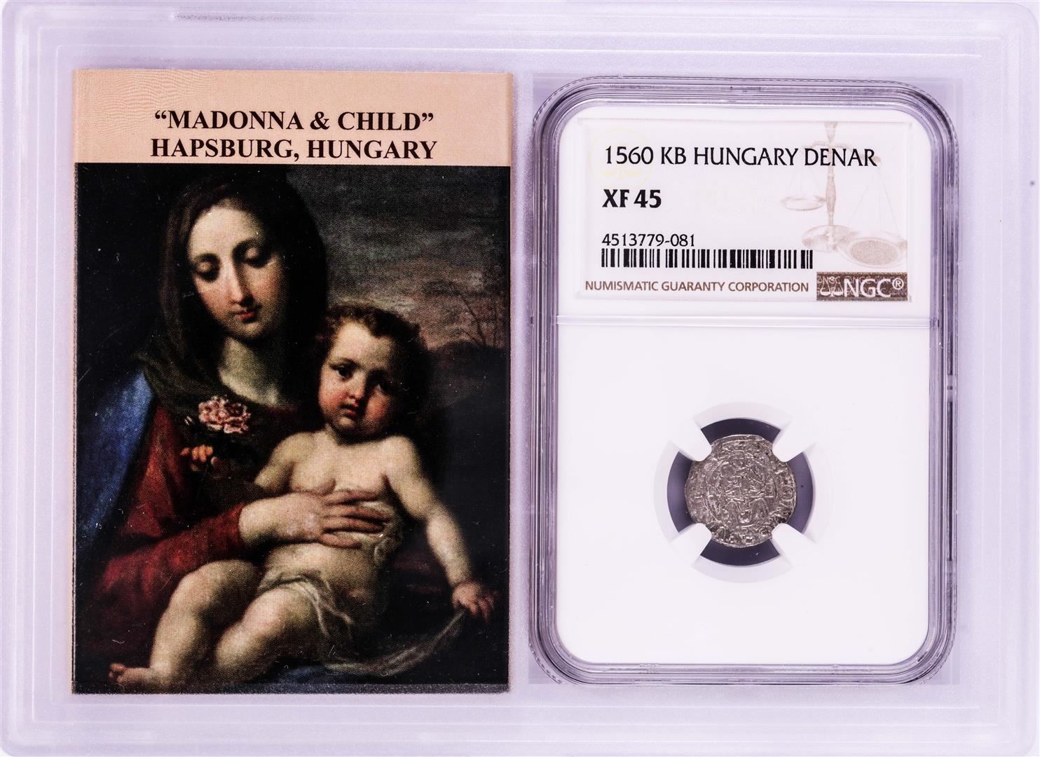 One 1560 KB Hungary Denar 'Madonna and Child' Coin NGC XF45 w/ Story Box. NGC Certified.