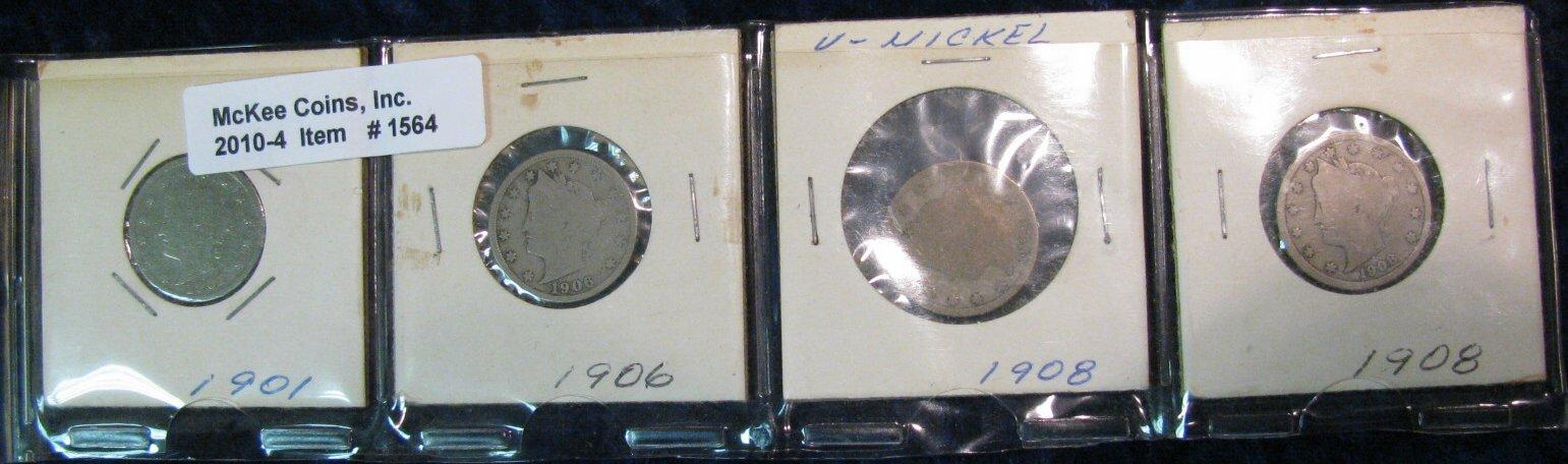 1564. 1901, 06, & (2) 08 Liberty Nickels. G-4.