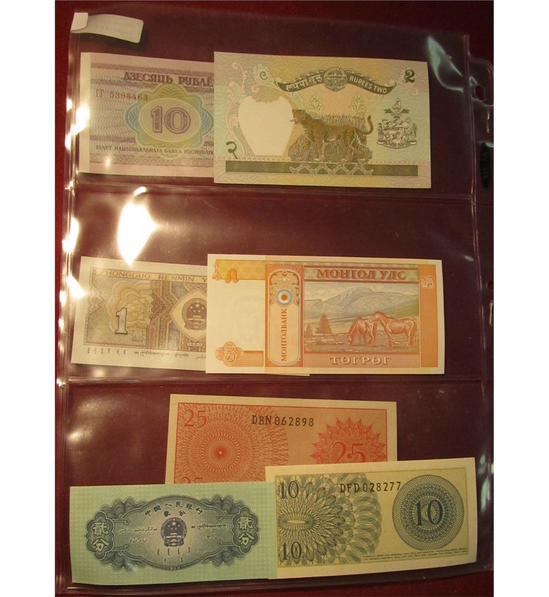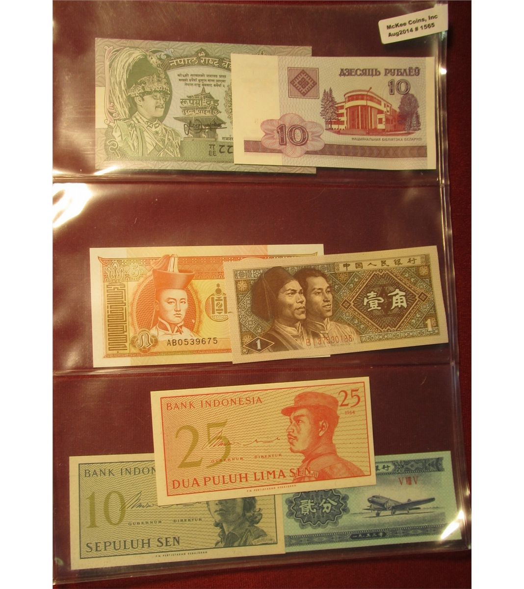 1565. (6) Foreign Bank notes in plastic pages. All CU or nearly so.