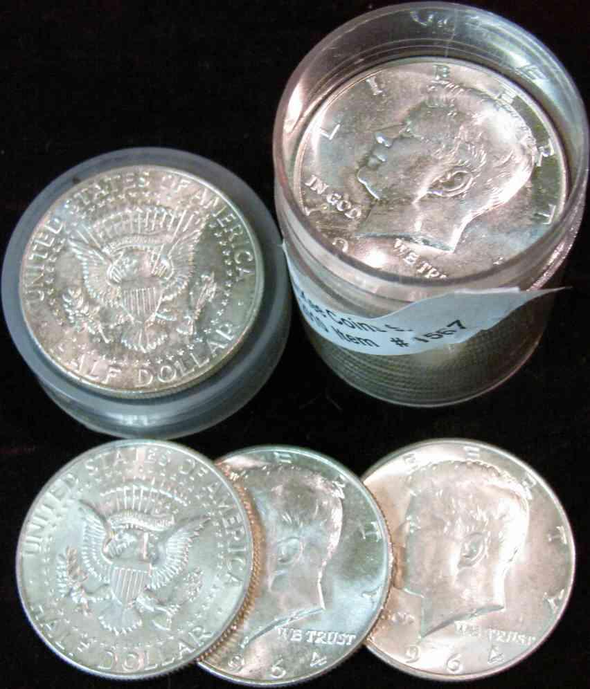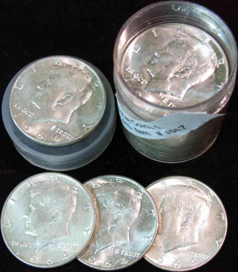 1567. 1964 D Roll 90% Silver Kennedy Half Dollars. EF-Unc. ($10 face value)