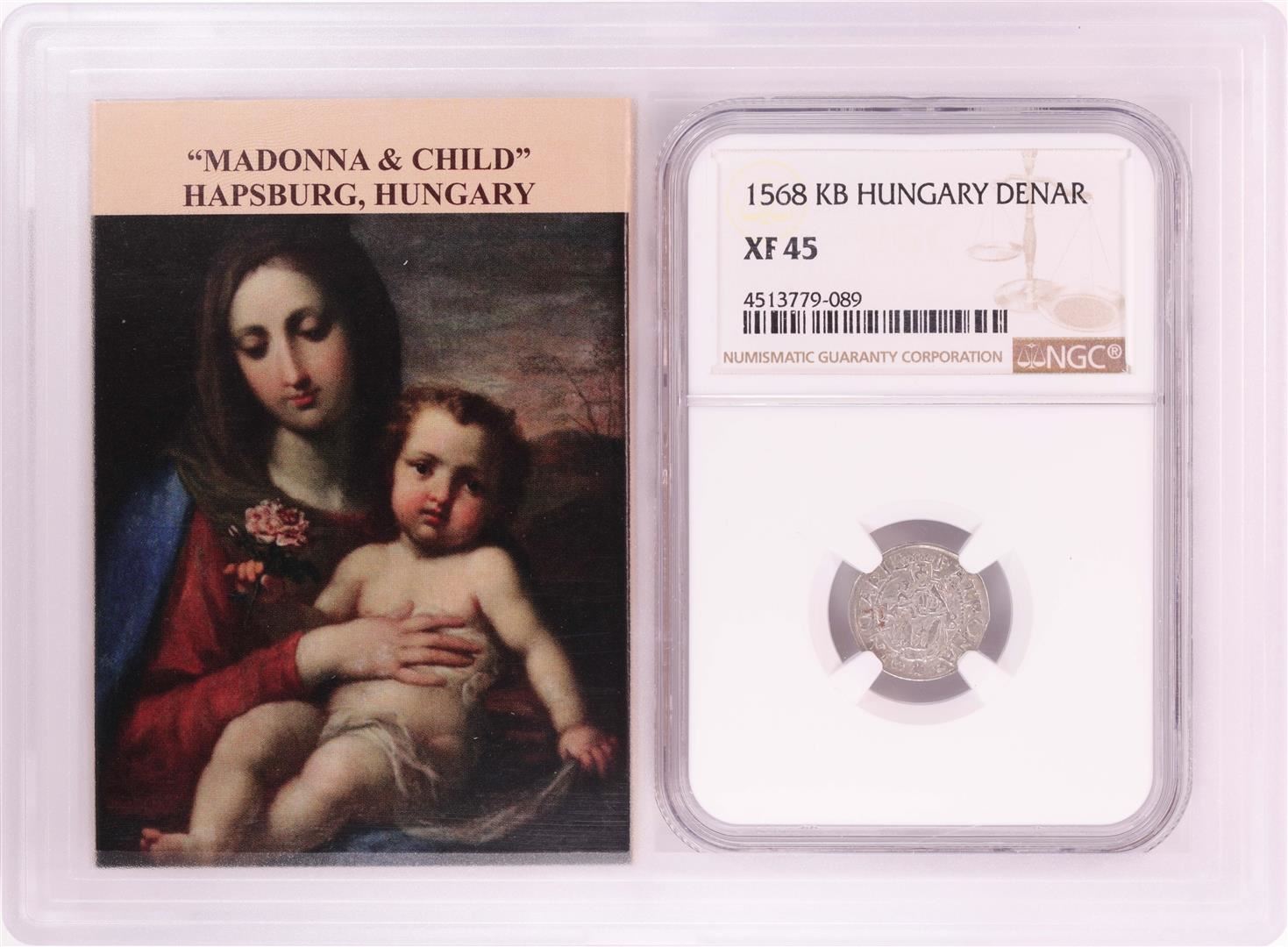 1568 KB Hungary Denar 'Madonna and Child' Coin NGC XF45 w/ Story Box