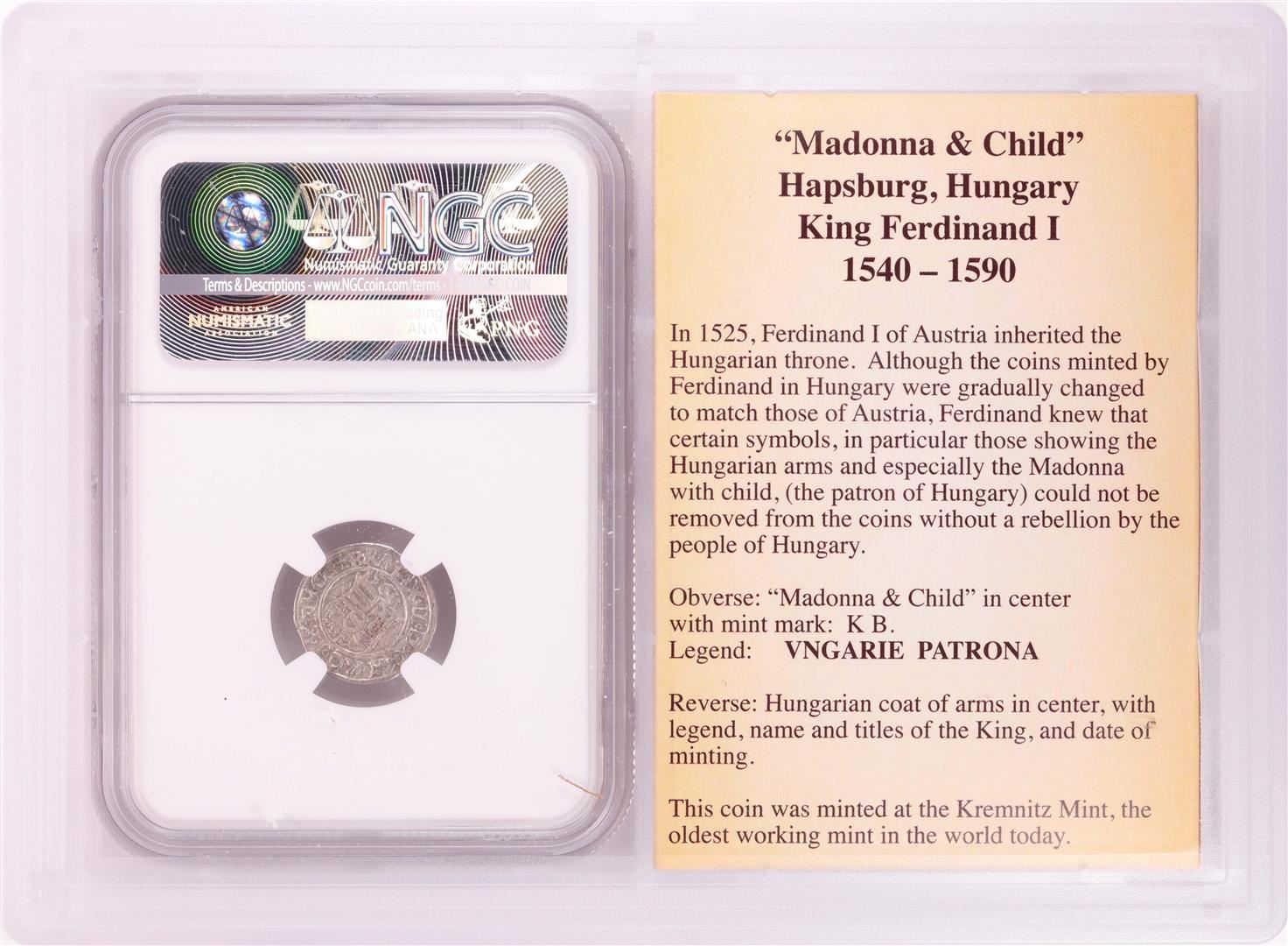 One 1568 KB Hungary Denar 'Madonna and Child' Coin NGC XF45 w/ Story Box. NGC Certified.