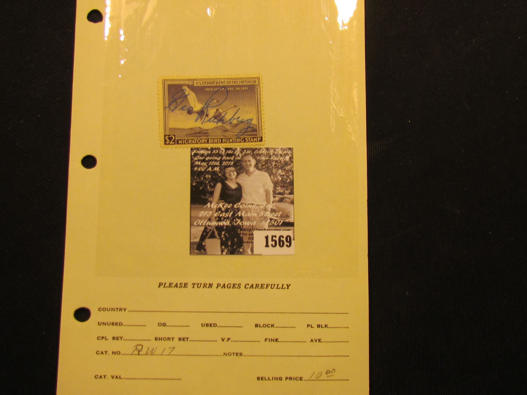 1569 . 1950 RW17 U.S. Department of the Interior Federal Migratory Waterfowl Stamp. Signed.