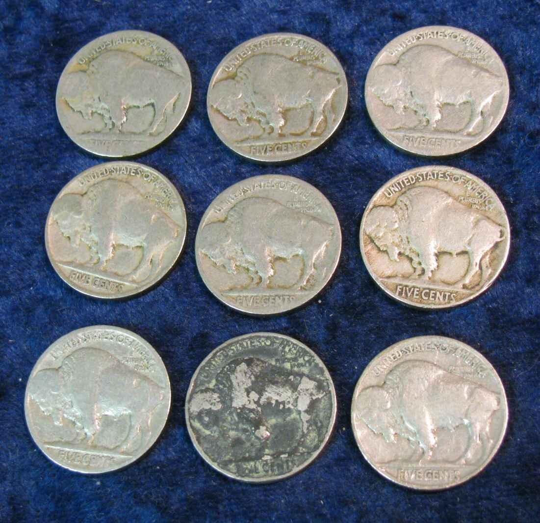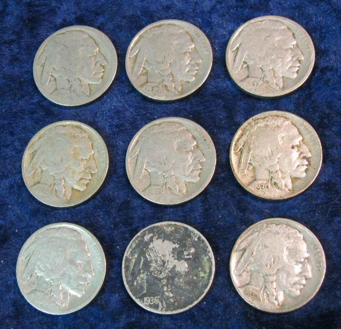 157. (9) Old Pre 1938 U.S. Buffalo Nickels.
