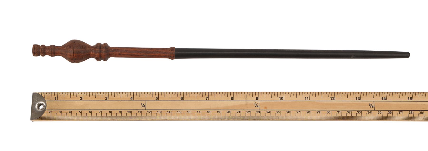 In the world of Harry Potter, McGonagall's wand was made of fir wood with a dragon heartstring core. In reality, this wand is crafted from two different woods with the shaft painted black and the handle given a natural brown finish. Dimensions: 15" x 1" x 1" (38.25 cm x 2.75 cm x 2.75 cm)