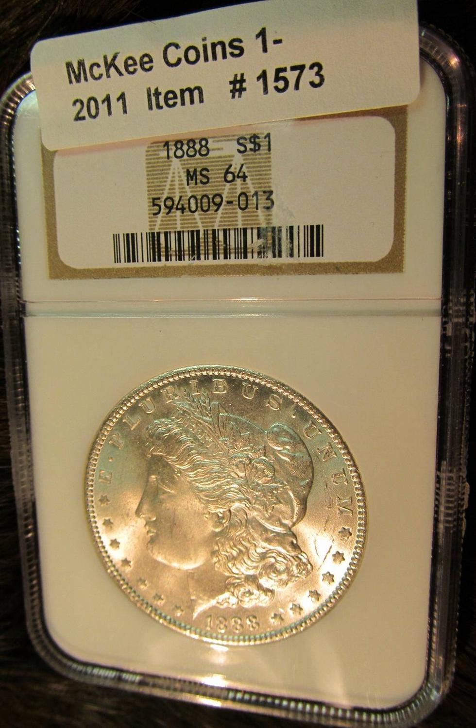 1573. 1888 P U.S. Morgan Silver Dollar. NGC slabbed MS 64.