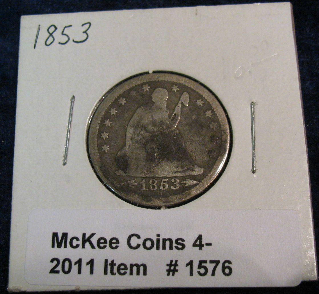 1576. 1853P Rays & Arrows Liberty Seated Quarter. G.