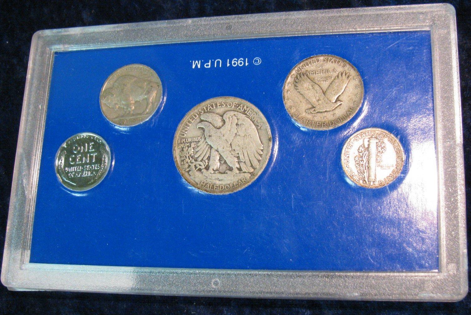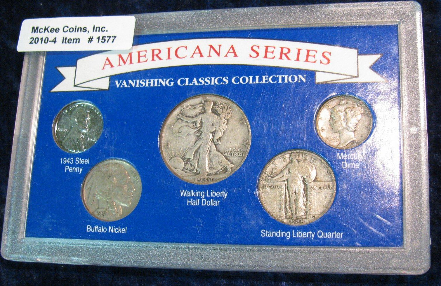 1577. Americana Series Vanishing Classics Collection includes 1943 Steel Cent, Buffalo Nickel, Mercury Dime, Standing Liberty Quarter, & Walking Liberty Half Dollar. All in a special holder.