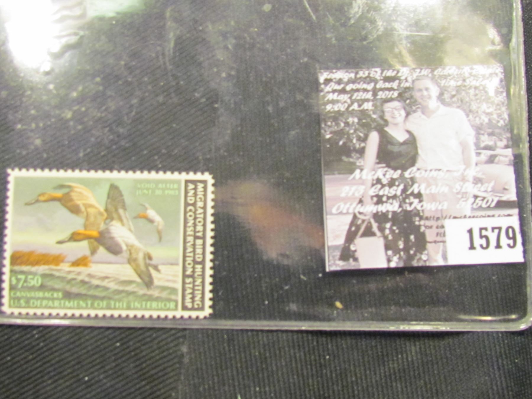 1579 . 1982 RW49 U.S. Department of the Interior Federal Migratory Waterfowl Stamp. Unused, not sign