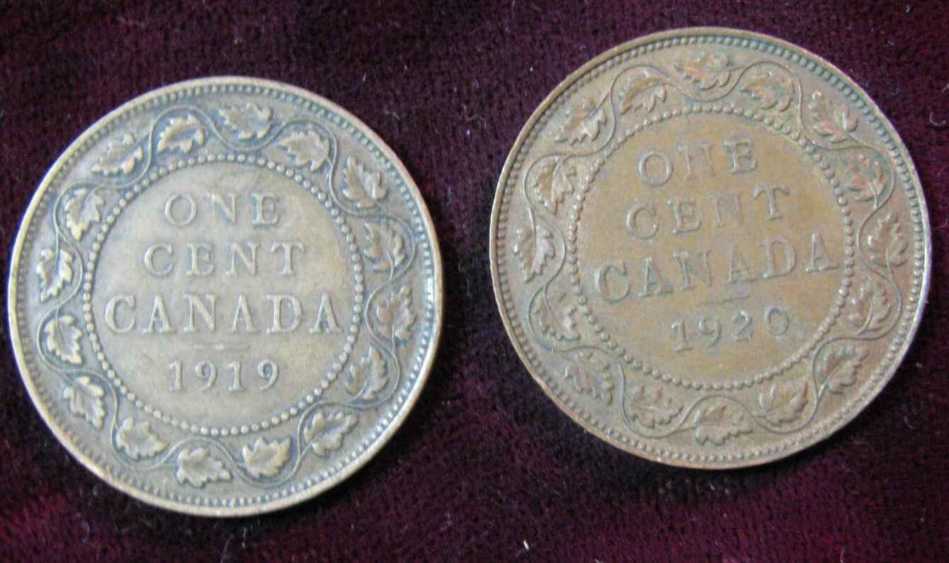 158. 1919 & 20 Canada Large Cents. VG-VF.