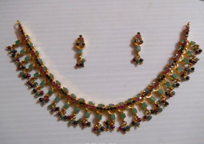 158.65 CTW GOLD PLATED EMERALD/RUBY/ SAPPHIRE NECKLACE **|**|** 158.65 CTW GOLD PLATED EMERALD/RUBY/ SAPPHIRE NECKLACE AND EARRING SET STERLING SILVER ; MSRP: $1600