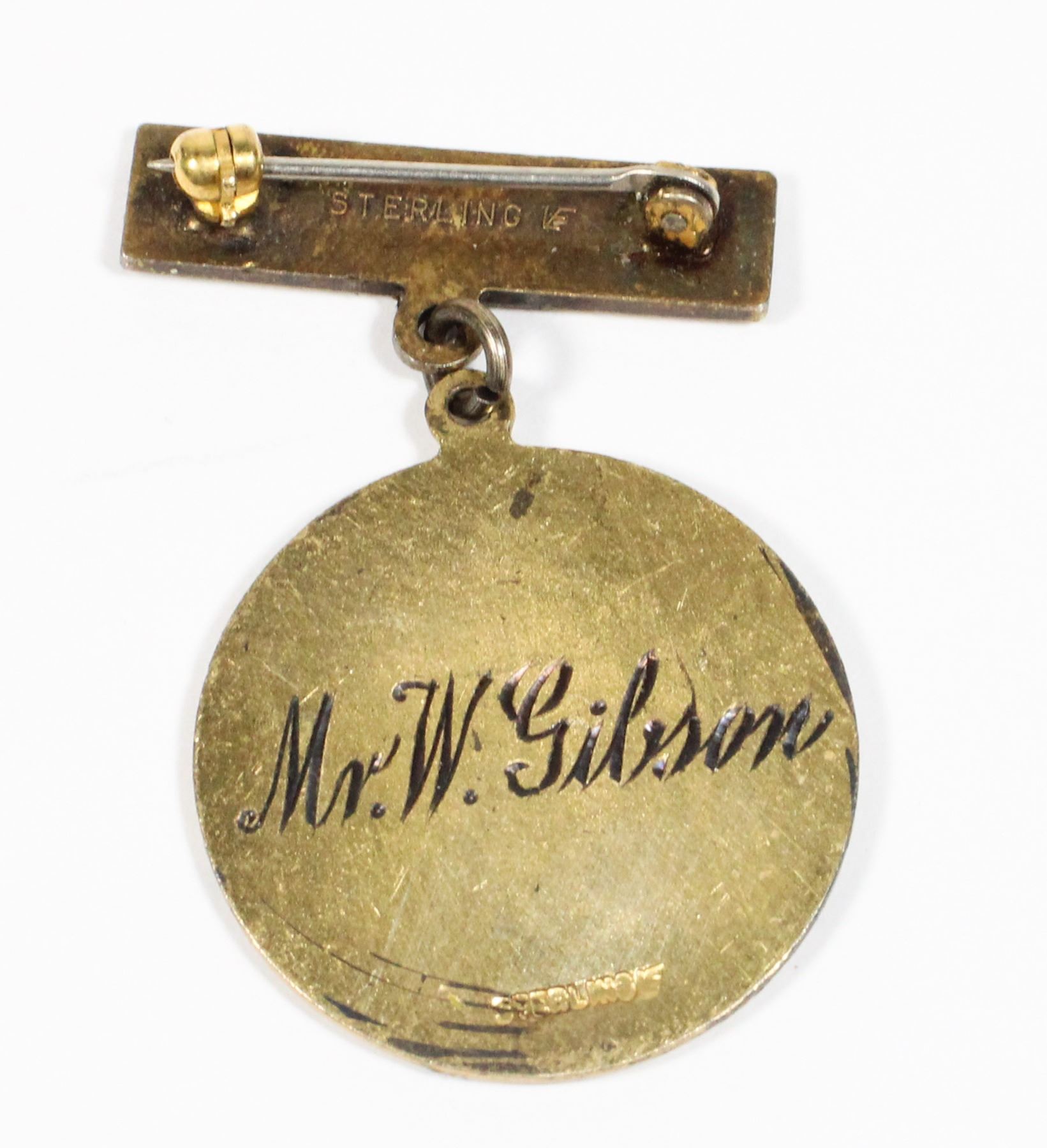 MARKED STERLING ON REVERSE, NAMED ON REVERSE TO "MR. W. GIBSON" 1940'S ERA CANADIAN RED CROSS INSIGNIA SOCIETY SERVICE BADGE