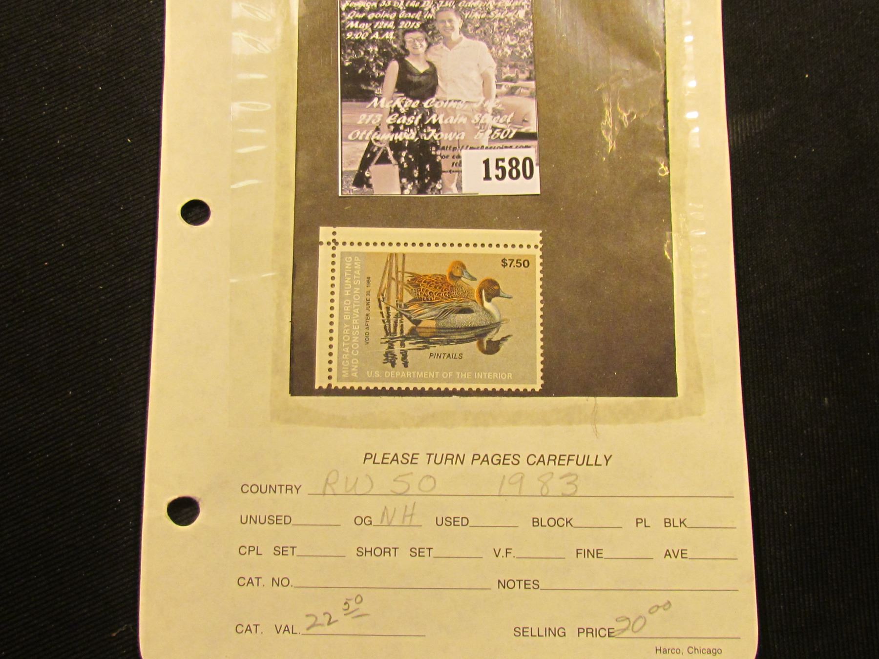 1580 . 1983 RW50 U.S. Department of the Interior Federal Migratory Waterfowl Stamp. Unused, not signed, OG, NH, VF.