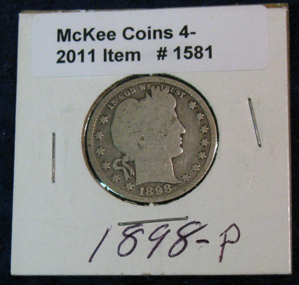 1581. 1898P Barber Quarter. G.