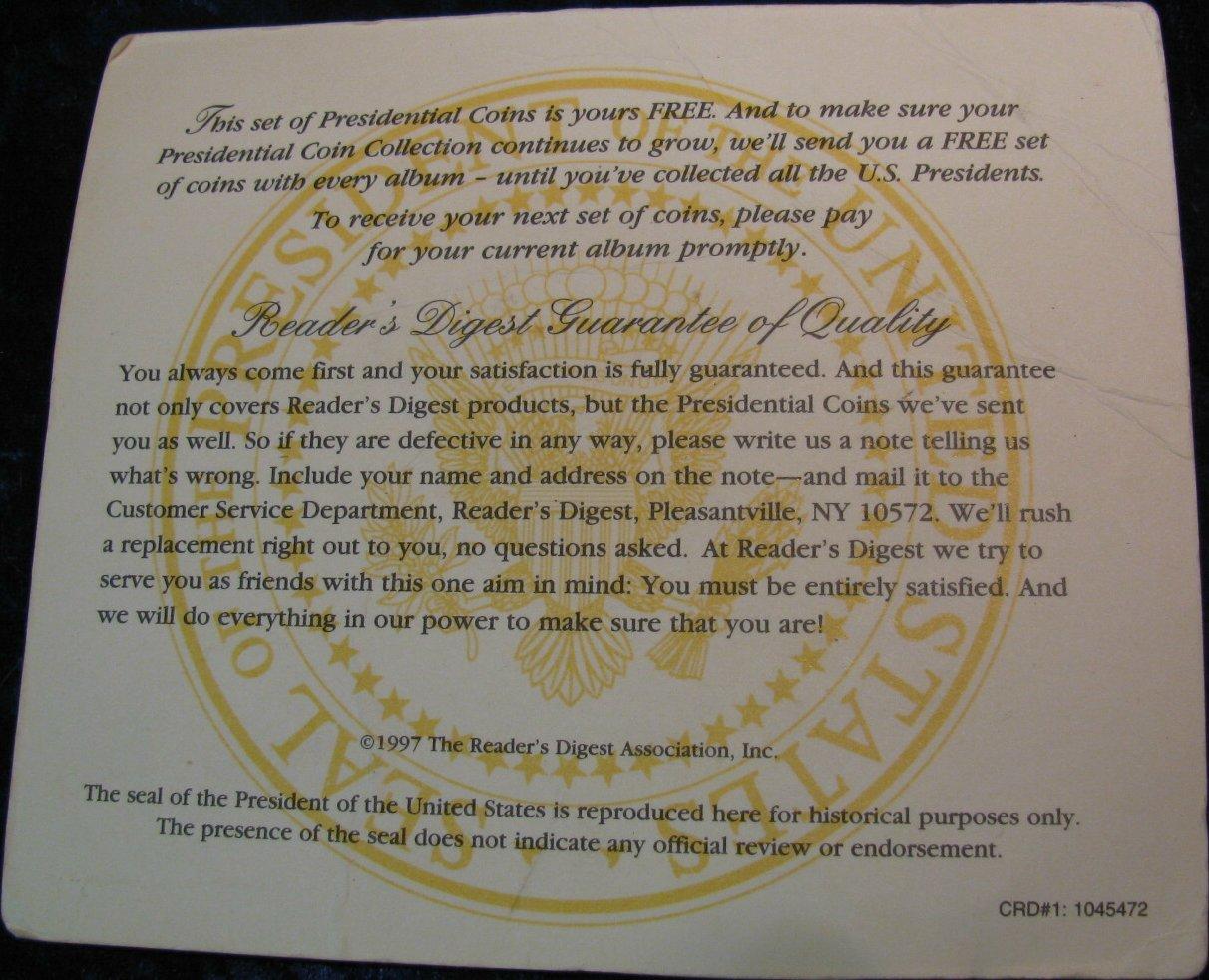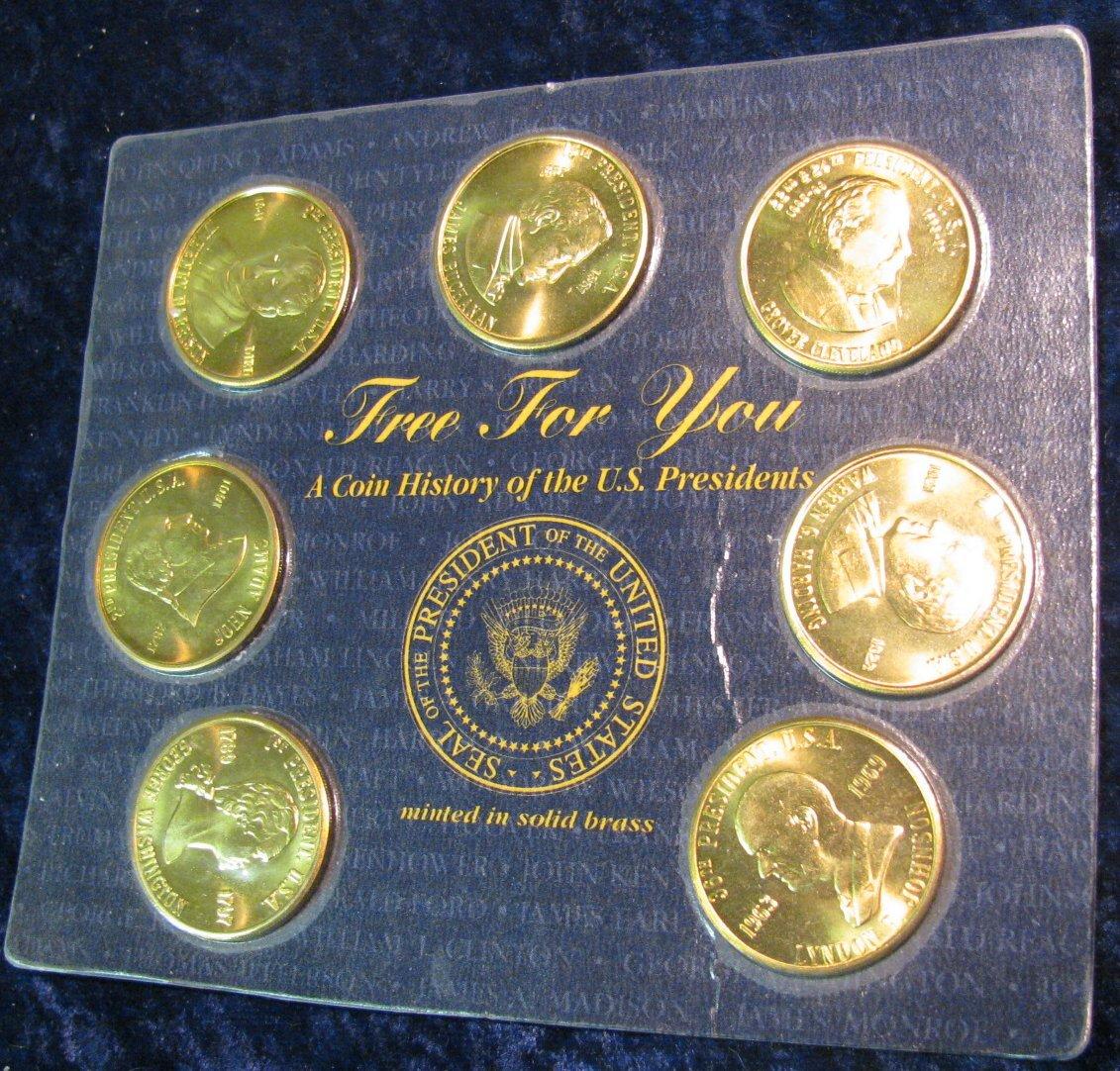 1584. (7) Different Solid Brass Presidential Medals in a holder.