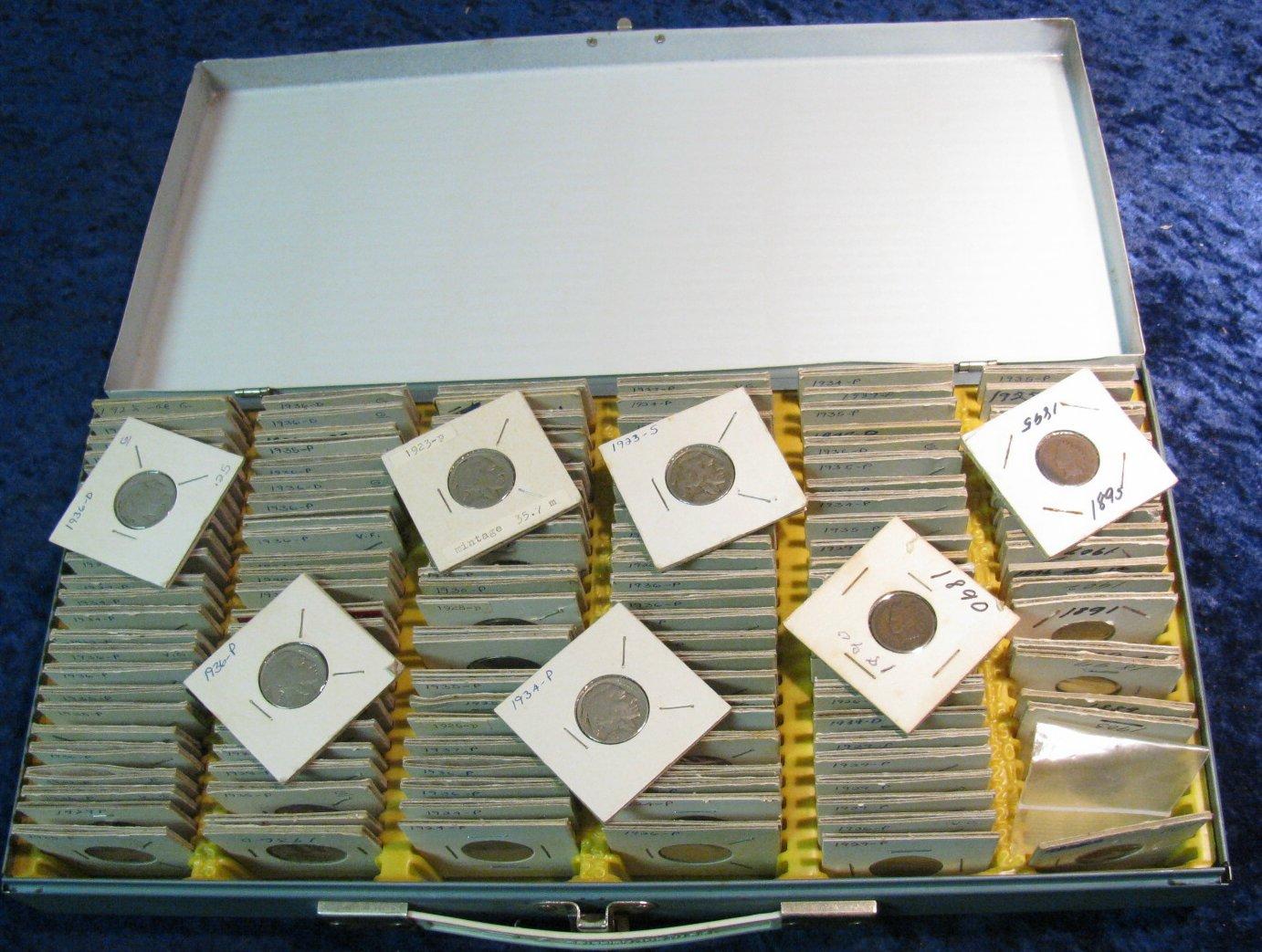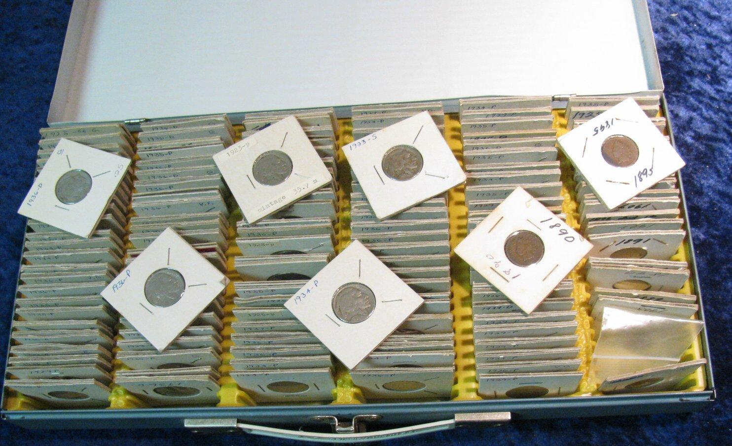 1585. Metal Stock Box containing (130) Buffalo Nickels &