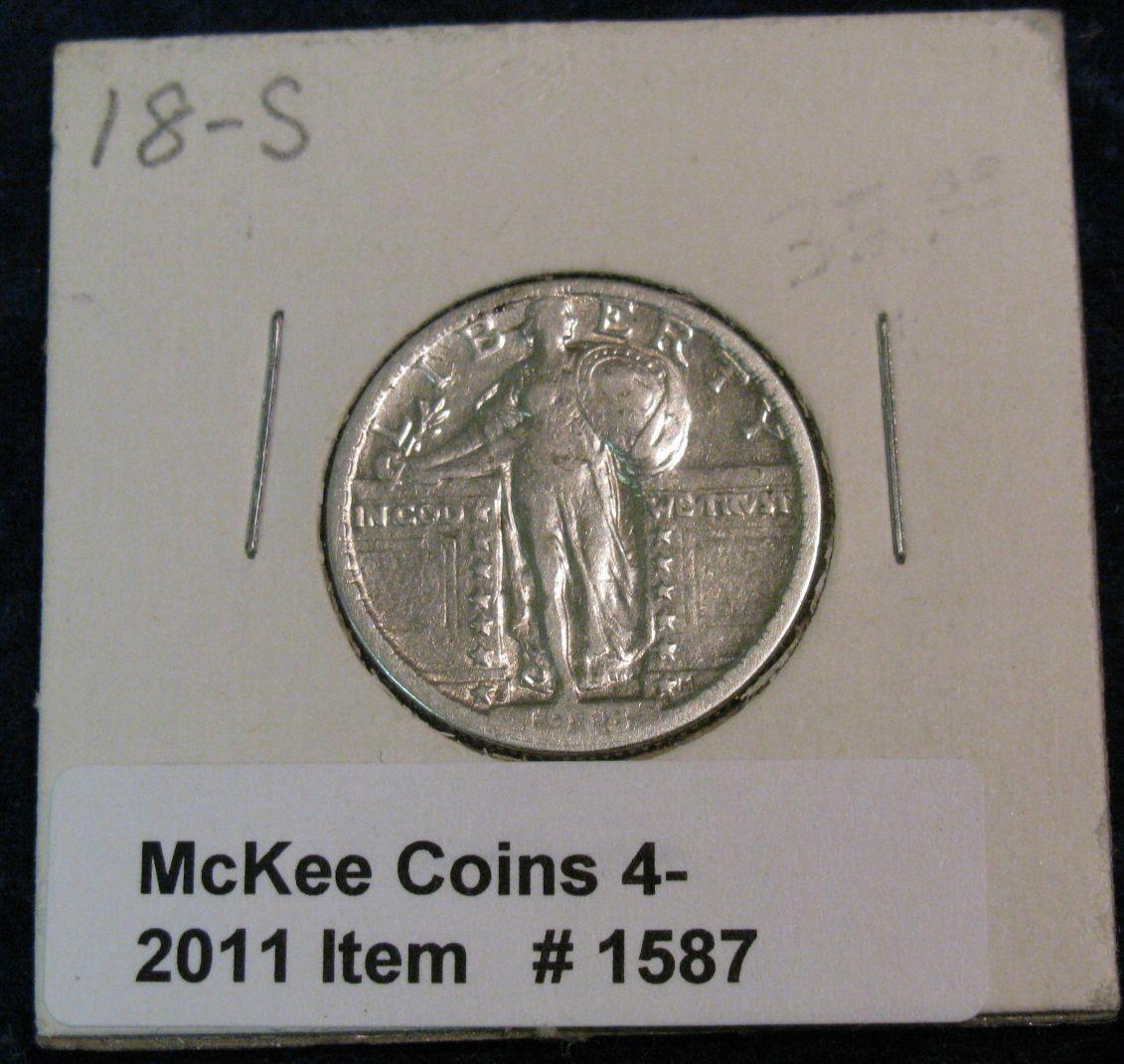 1587. 1918S Standing Liberty Quarter. F. Cleaned.