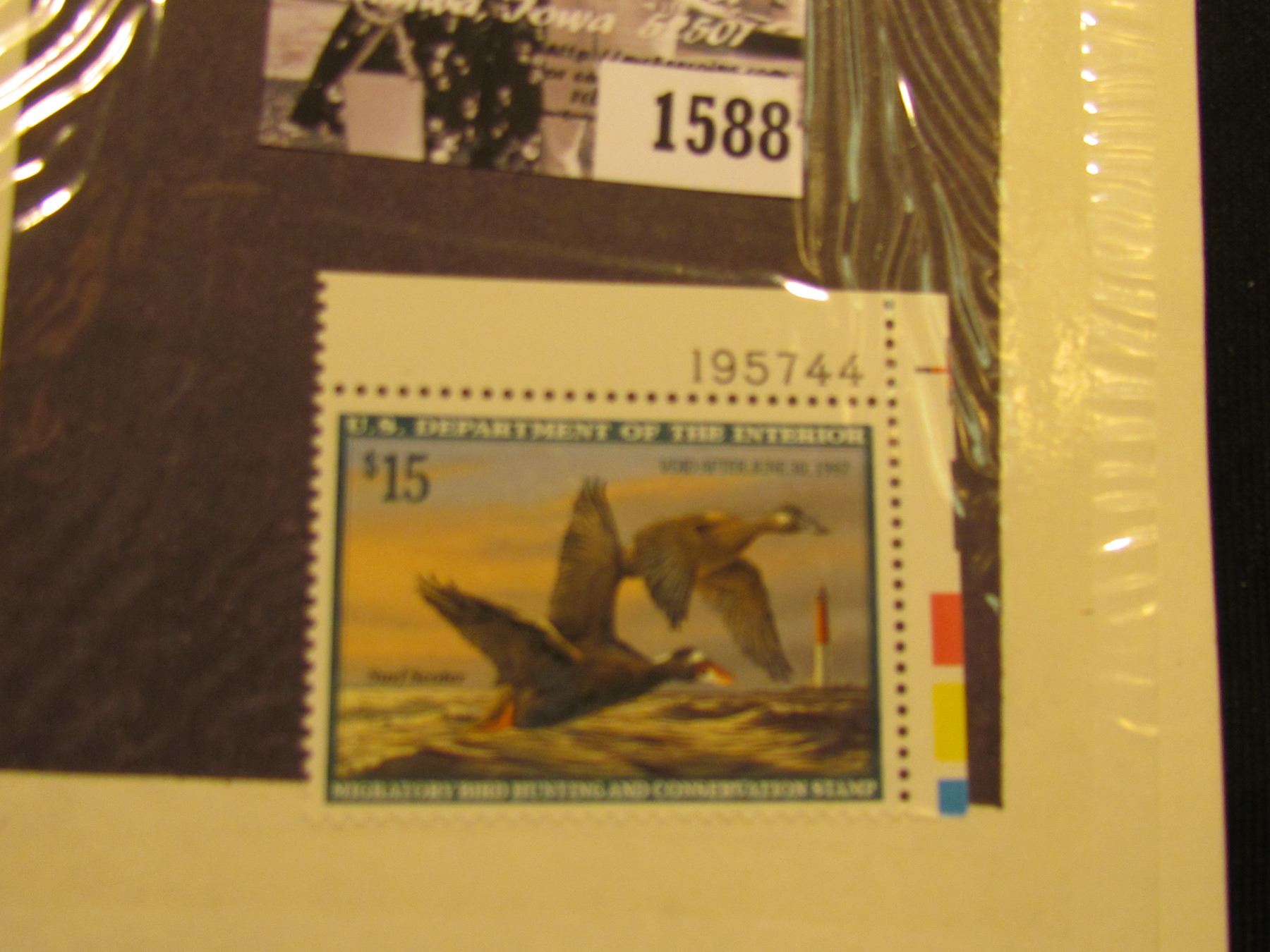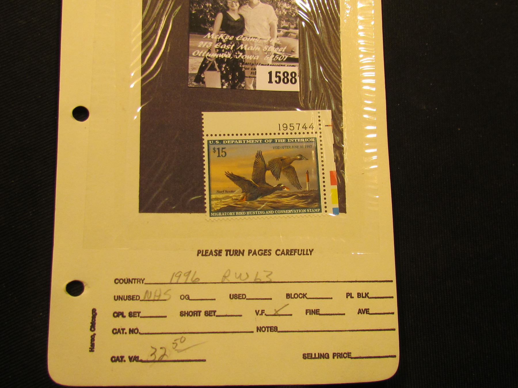 1588 . 1996 RW63 U.S. Department of the Interior Federal Migratory Waterfowl Stamp. Plate number single, unused, not signed, OG, NH, VF.
