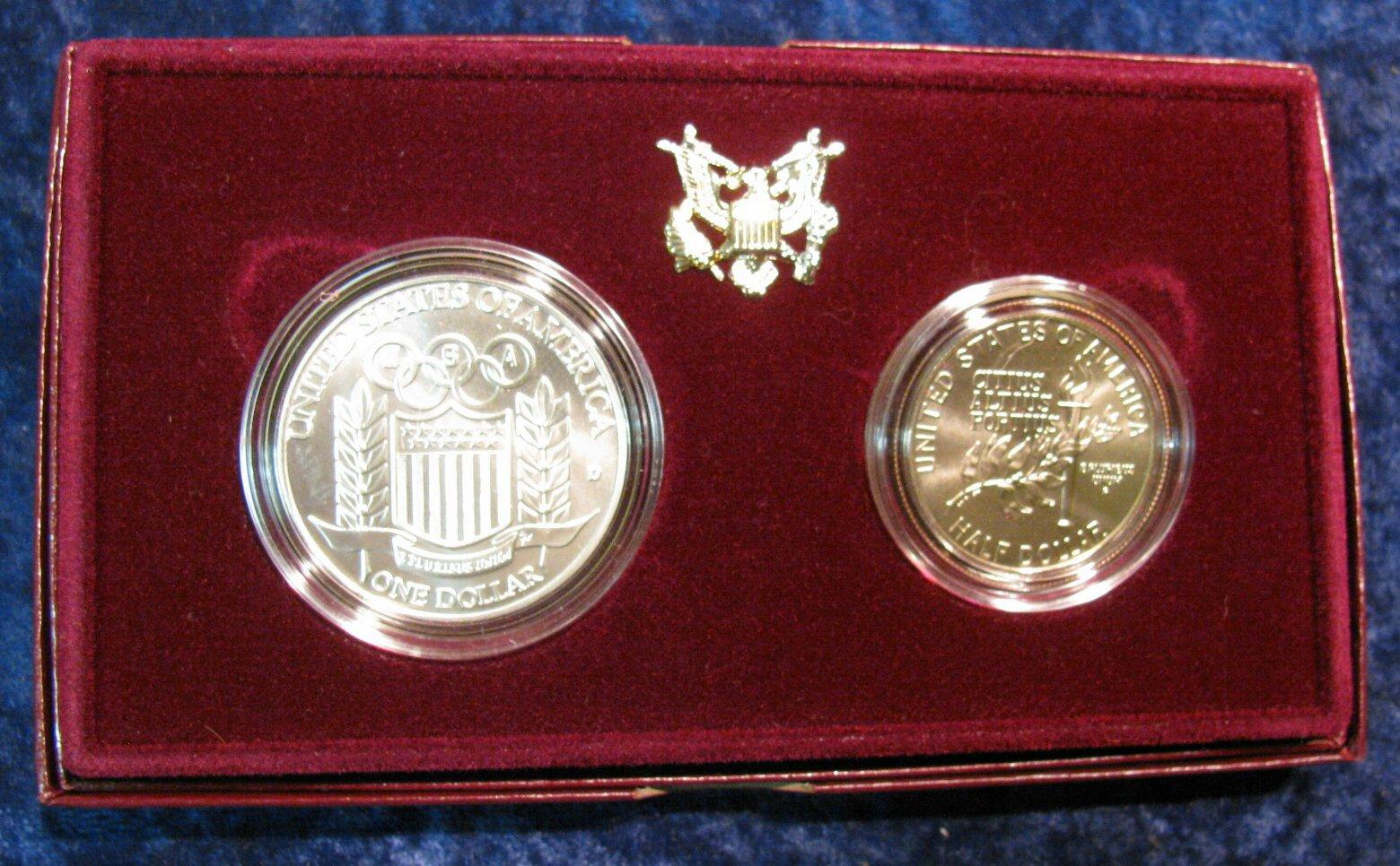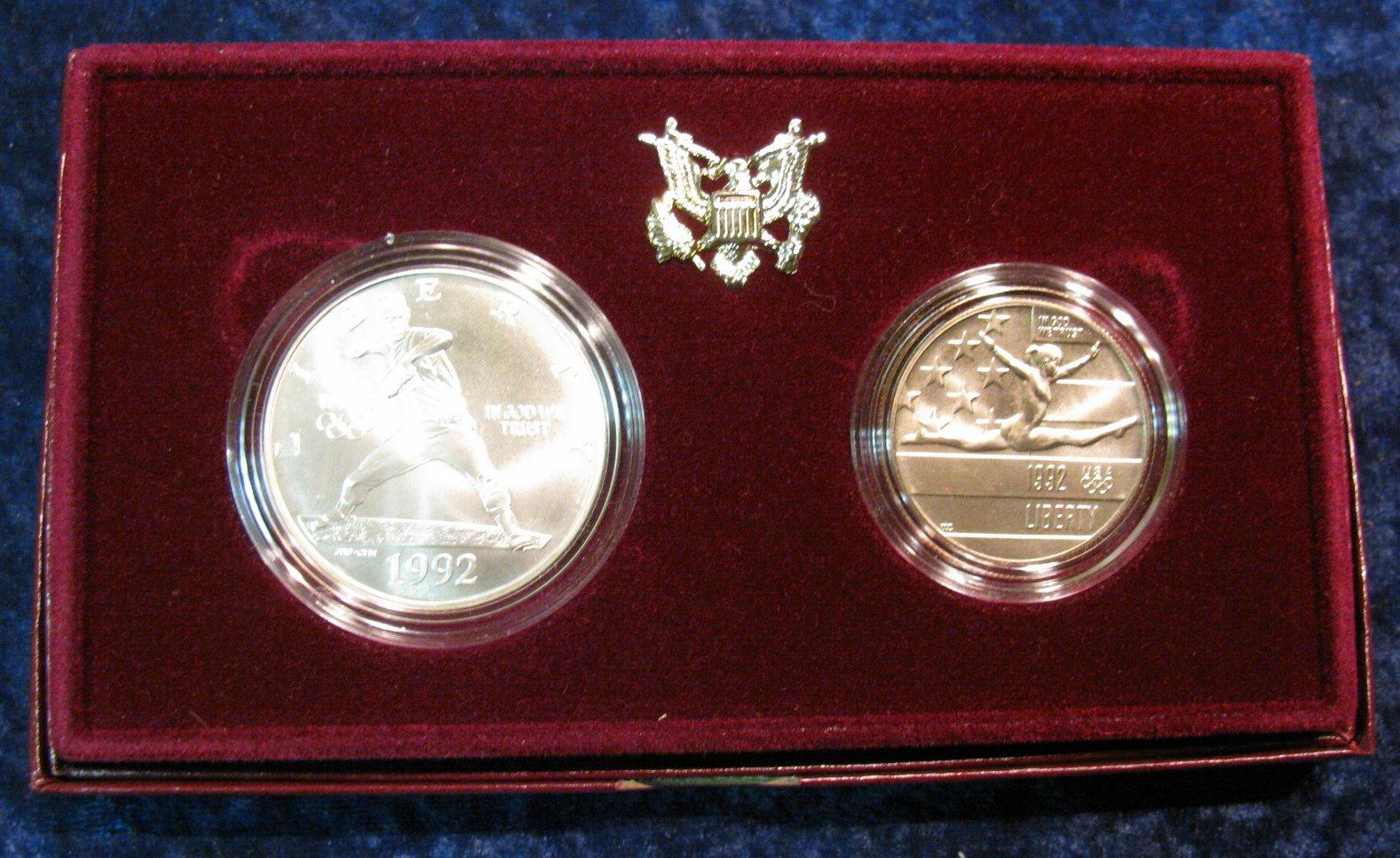 1589. 1992 U.S. Olympics Two-Coin Uncirculated Set in original box of issue.