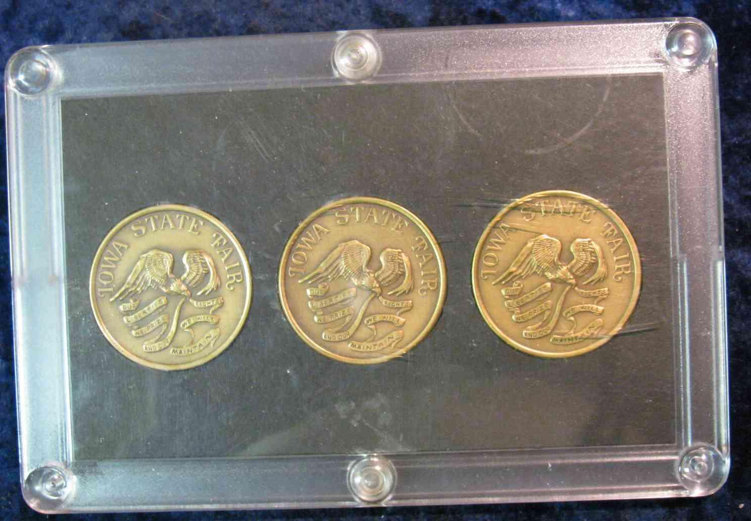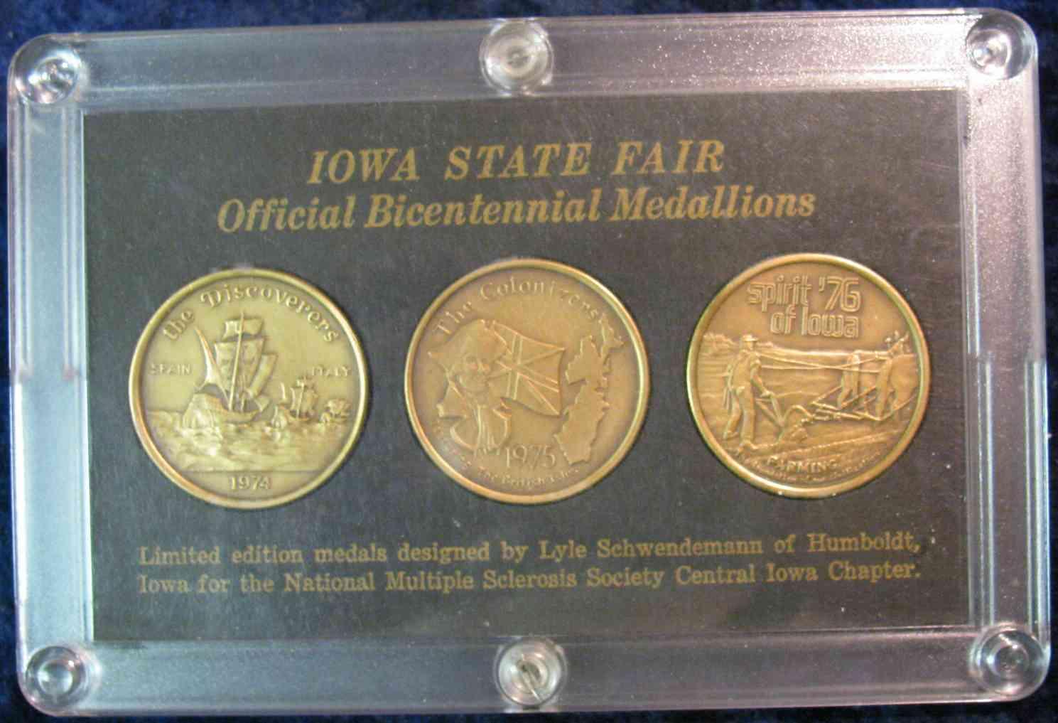 1589. Three-Piece Iowa State Fair Official Bicentennial Medallion Set. 39mm. Bronze.