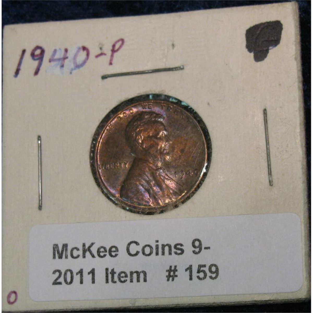 159. 1940 P Lincoln Cent. Unc. Mottled toning.