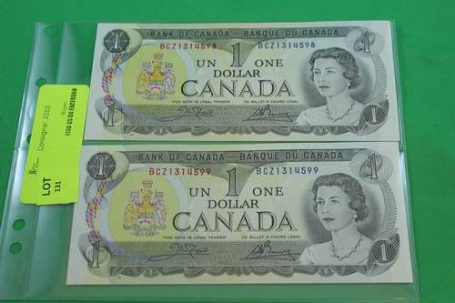 #159 1973 CANADA $1 BILLS IN SEQUENCE, UNCIRC.