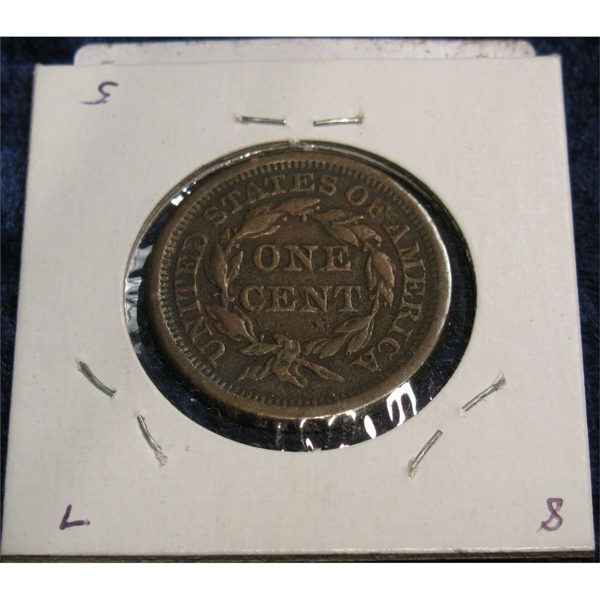 1590. 1853 U.S. Large Cent. Scratched and slightly pitted, otherwise VF.