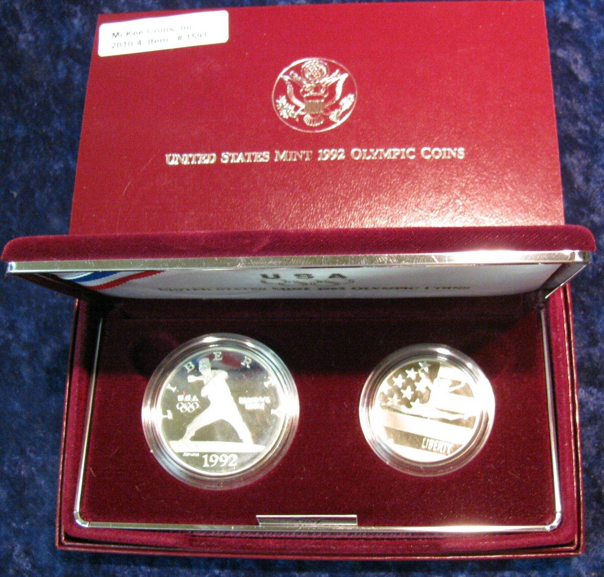 1591. 1992 S U.S. Olympics Two-Coin Proof Set in original box of issue.