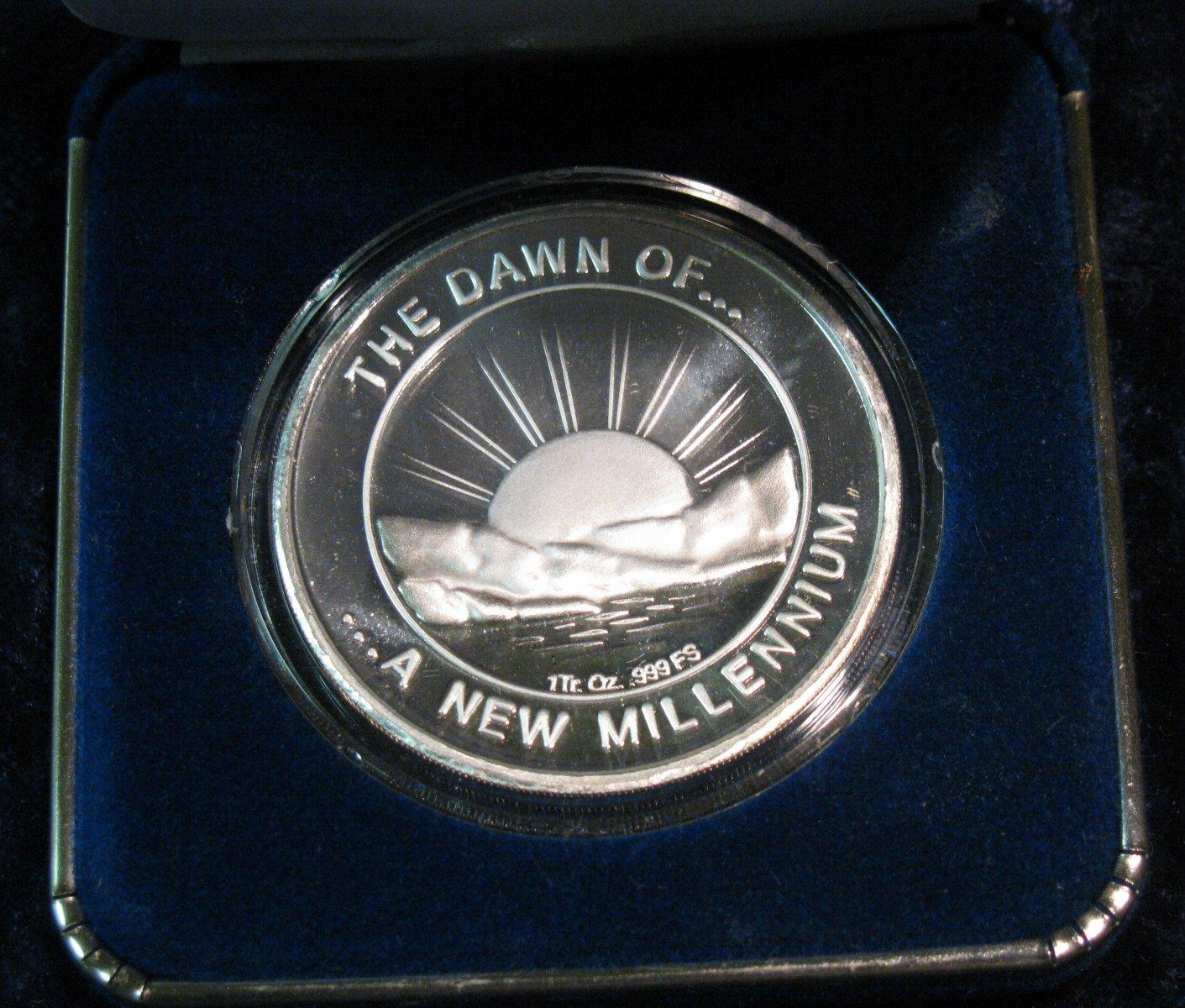 1591. 2001 Colorized New Millennium One Troy Ounce Silver in special holder.