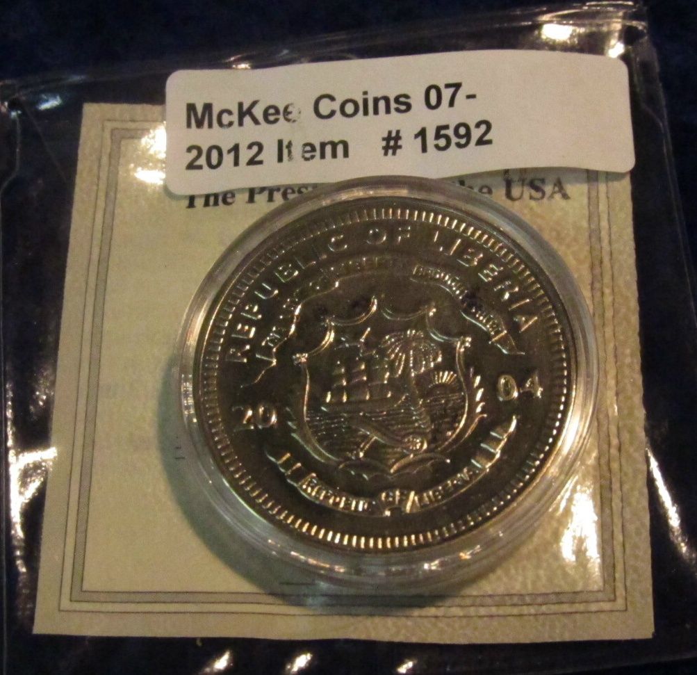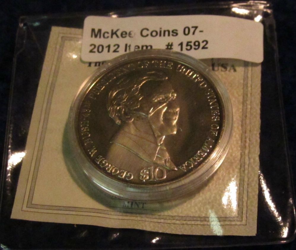 1592. 2004 Republic of Liberia $10 President George W. Bush Commemorative in original holder. BU.