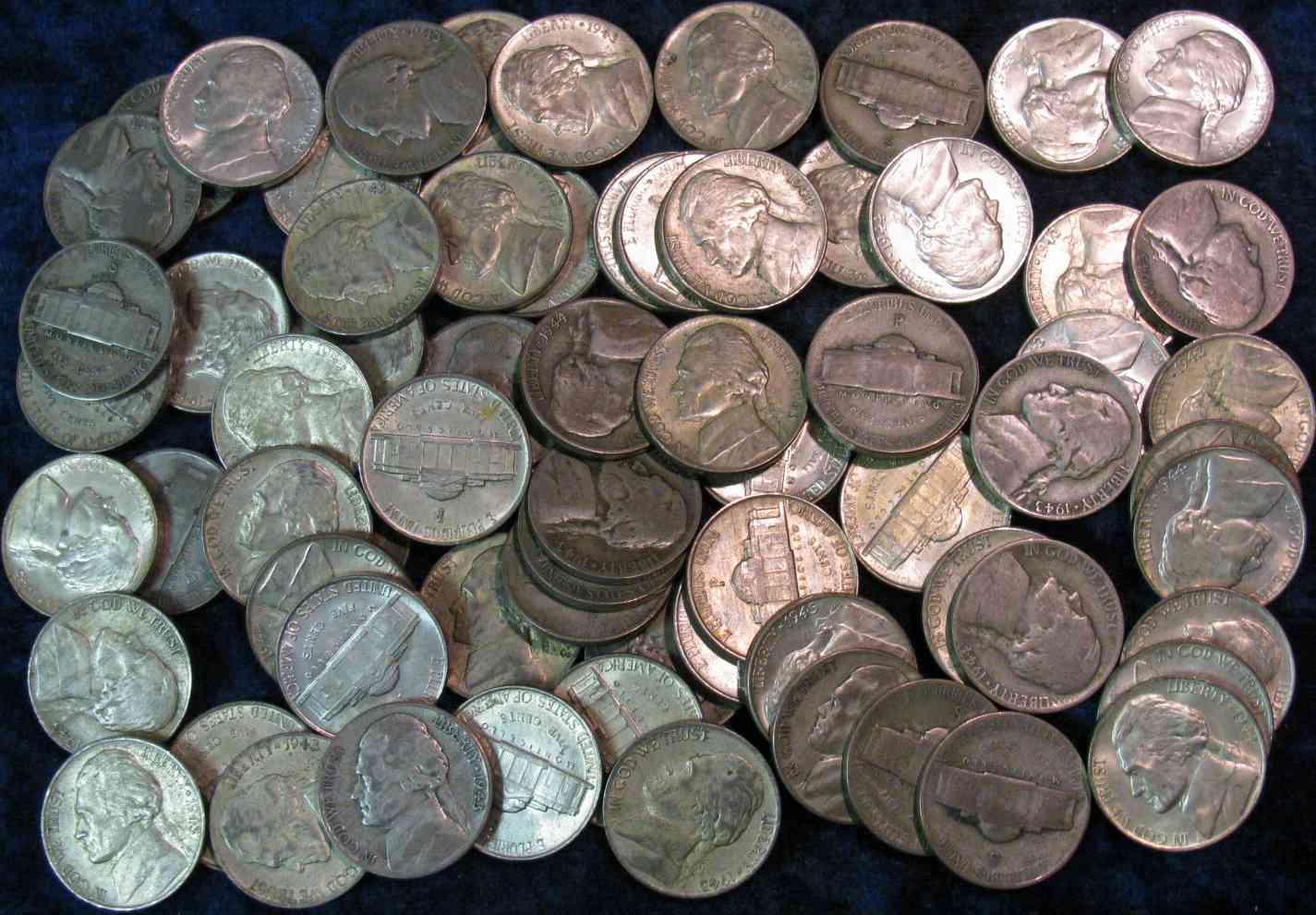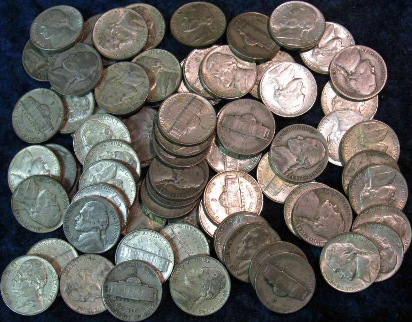 1592. (70) Mixed date Silver War Nickels. Some better grades.