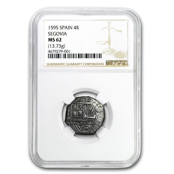 One piece 1595 Spain (Segovia) Silver 4 Reales Cob Phillip II MS-62 NGC