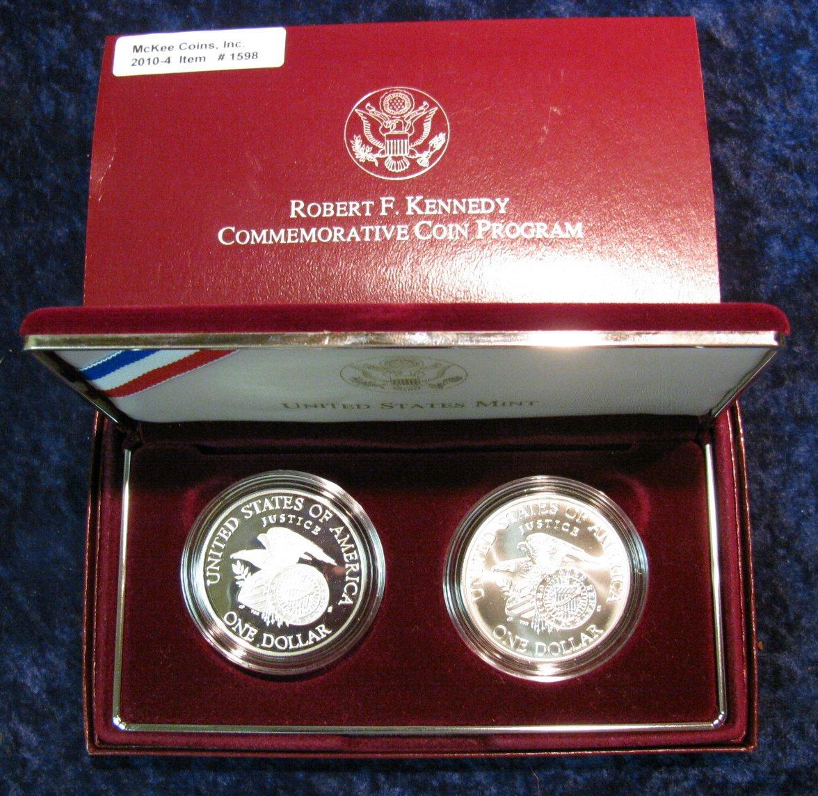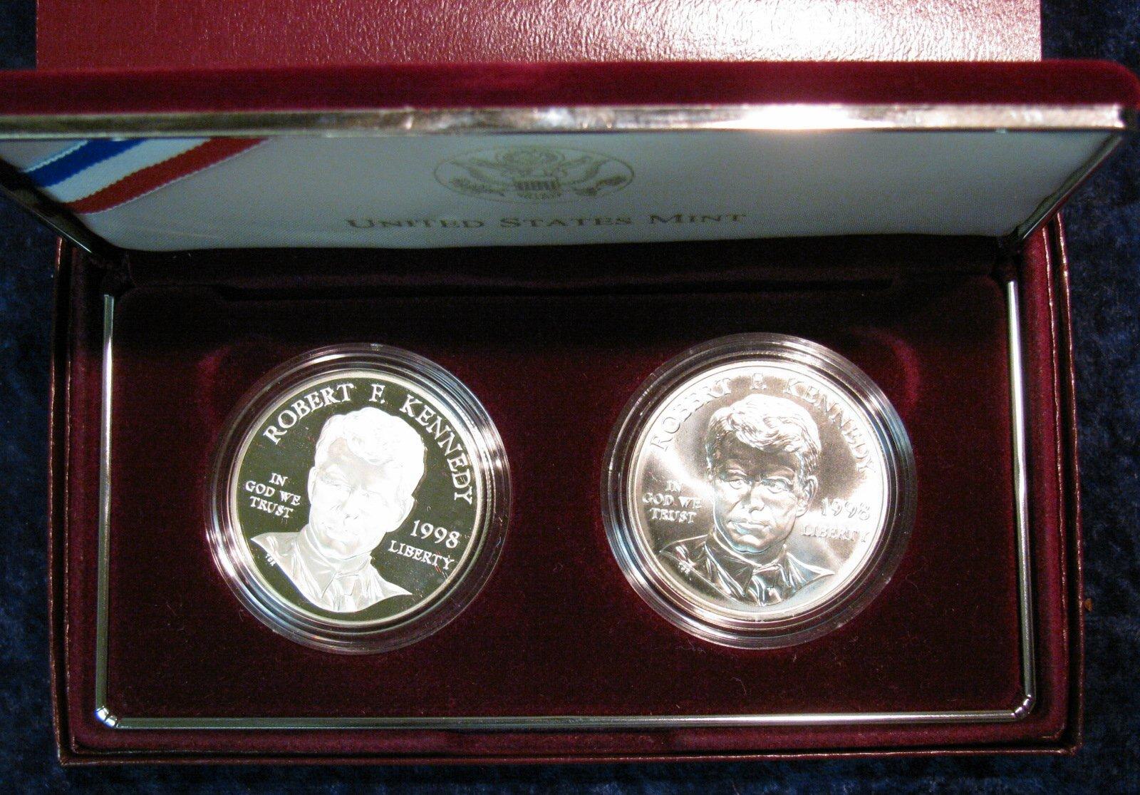 1598. 1998 S Proof & Uncirculated Robert F. Kennedy Memorial Silver Dollars. Two-coin Sets.