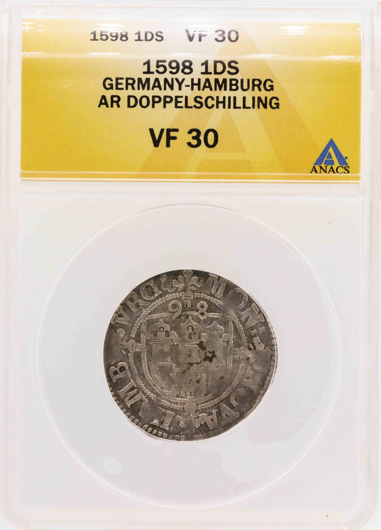 One 1598 German-Hamburg AR Doppelschilling Coin ANACS VF30.