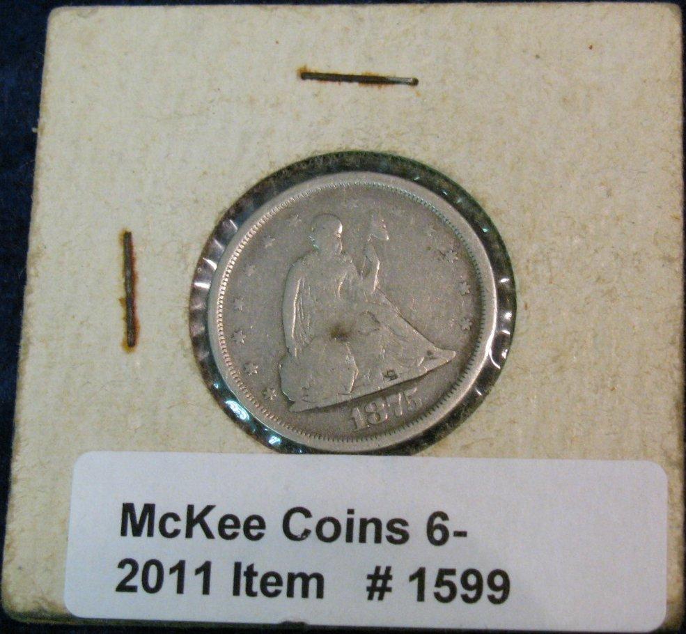 1599. 1875 S U.S. Twenty Cent Piece. VG-8.