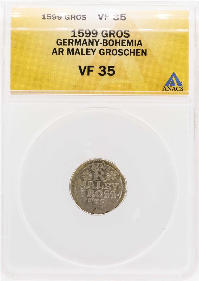 One 1599 Germany-Bohemia AR Maley Groschen Coin ANACS VF35. ANACS Certified.