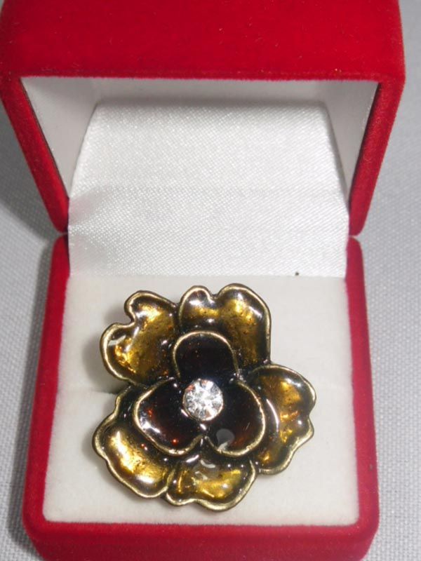 15CTW BROWN FLOWER CZ BRASS ADJUSTABLE RING **|**|** 15CTW BROWN FLOWER CZ BRASS ADJUSTABLE RING ; MSRP: $150