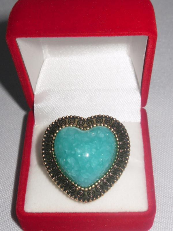 15CTW TEAL HEART BRASS RING SIZE 7 **|**|** 15CTW TEAL HEART BRASS RING SIZE 7 ; MSRP: $150