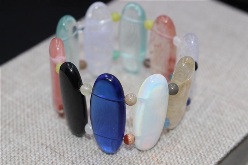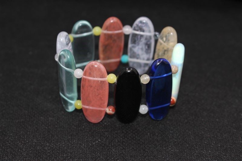 15X40 M.M. Plain Oval 5Mm Bead Multi-Quartz Bracelets #IGVR1164