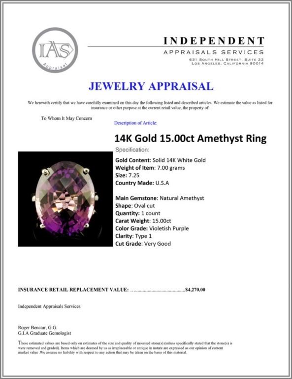 Regarding Appraised Jewelry and Loose Stones - Auctionfarm sends them out to a third party for Retail Replacement Value Appraisals, which are the most common. These types of evaluations are written for insurance needs. This would be the cost to replace the jewelry with an item of equal quality and kind, considered to be the current market price or the replacement value. This type of appraisal is done to protect you in the event of damage or loss of a valuable item. Our appraisals are conducted by independent 3rd Party appraisal firms that utilizes Certified GIA Gemologist. Appraisals should be used for verification of gemstone and/or metal weight, size, and grade only, not actual value. Appraisal value should be considered for insurance purposes only, not actual value, as price varies greatly from retail locations thru out the world. Items should not be purchased with the expectation to resell for appraisal price, or for profit.