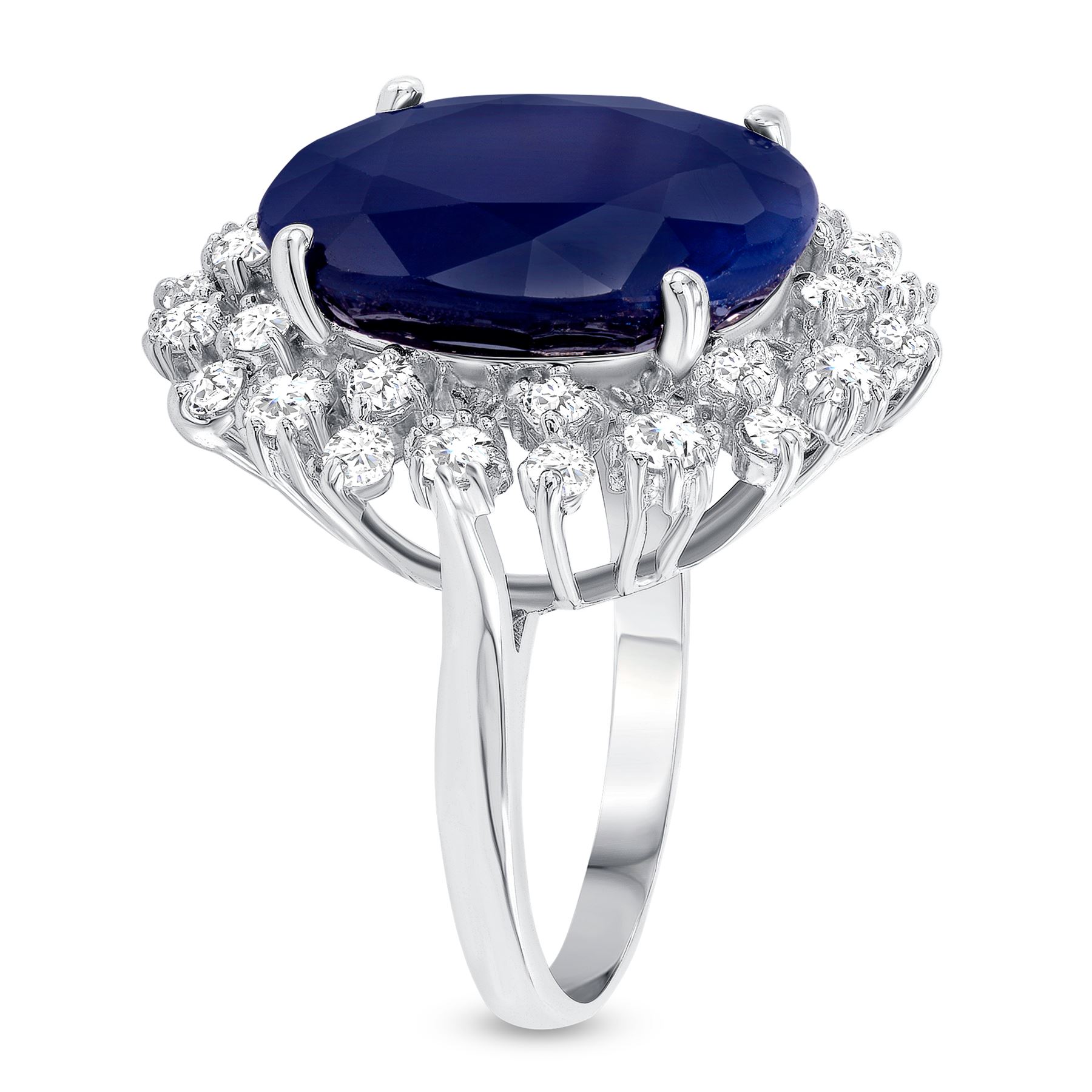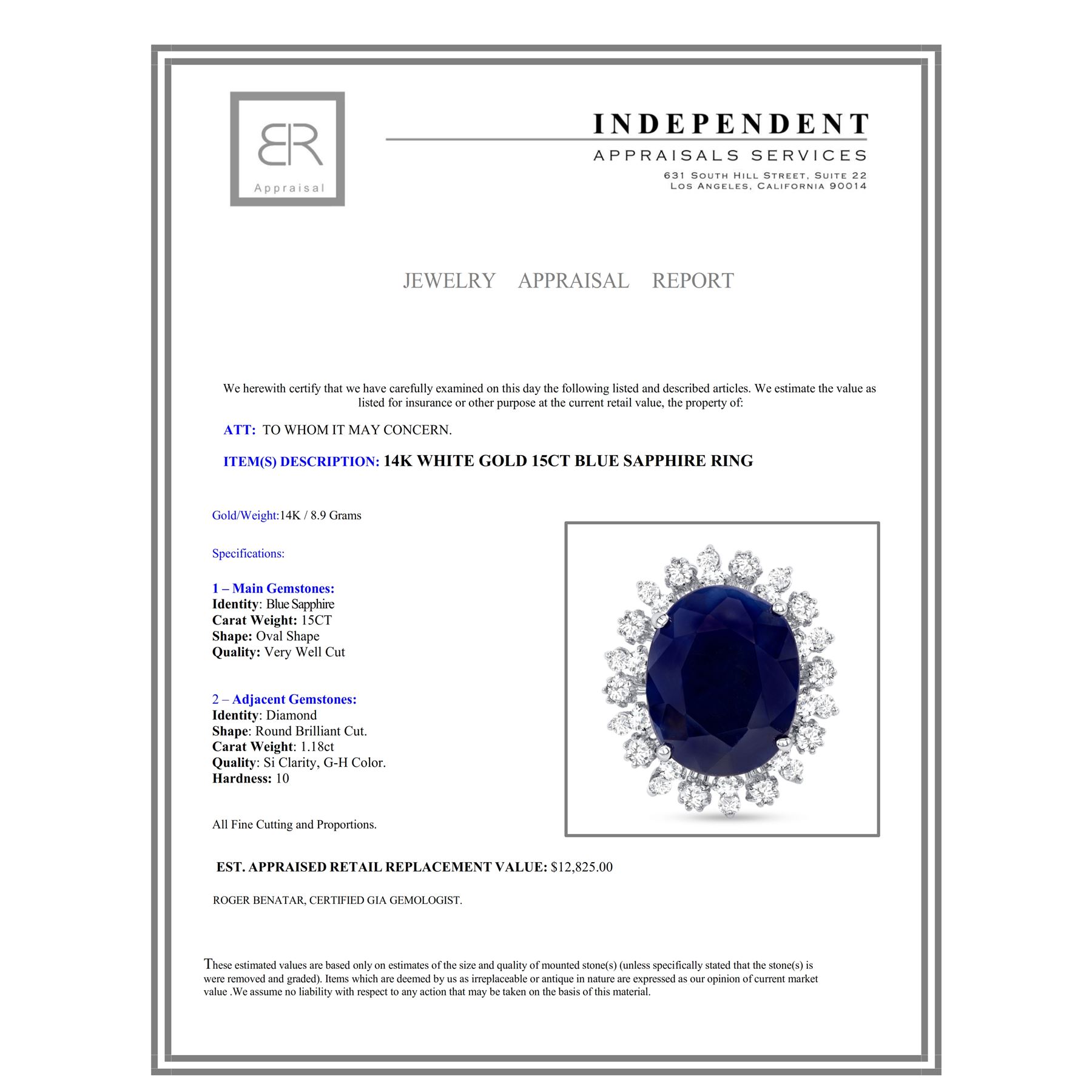 14k White Gold : 8.9gm / Sapphire : 15ct / Diamond : 1.18ct / #LSap38