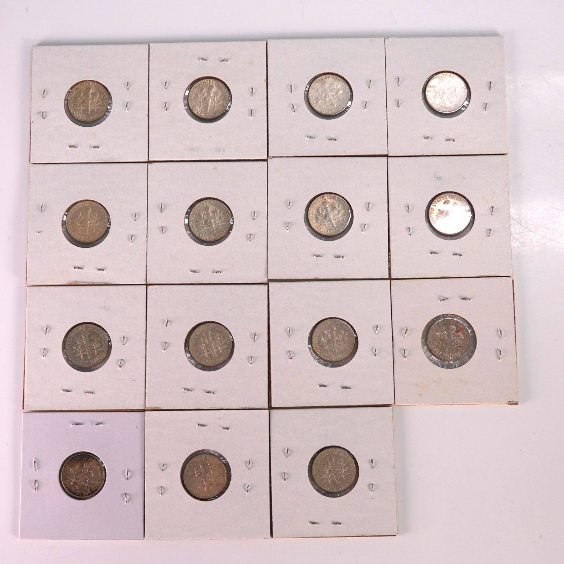 15pc Roosevelt Dime Coins 1964D Lot Includes Silver