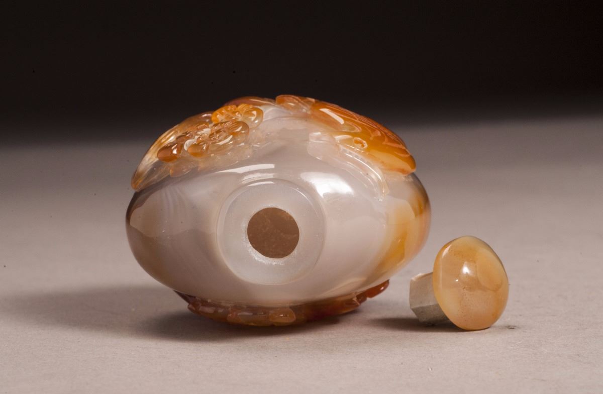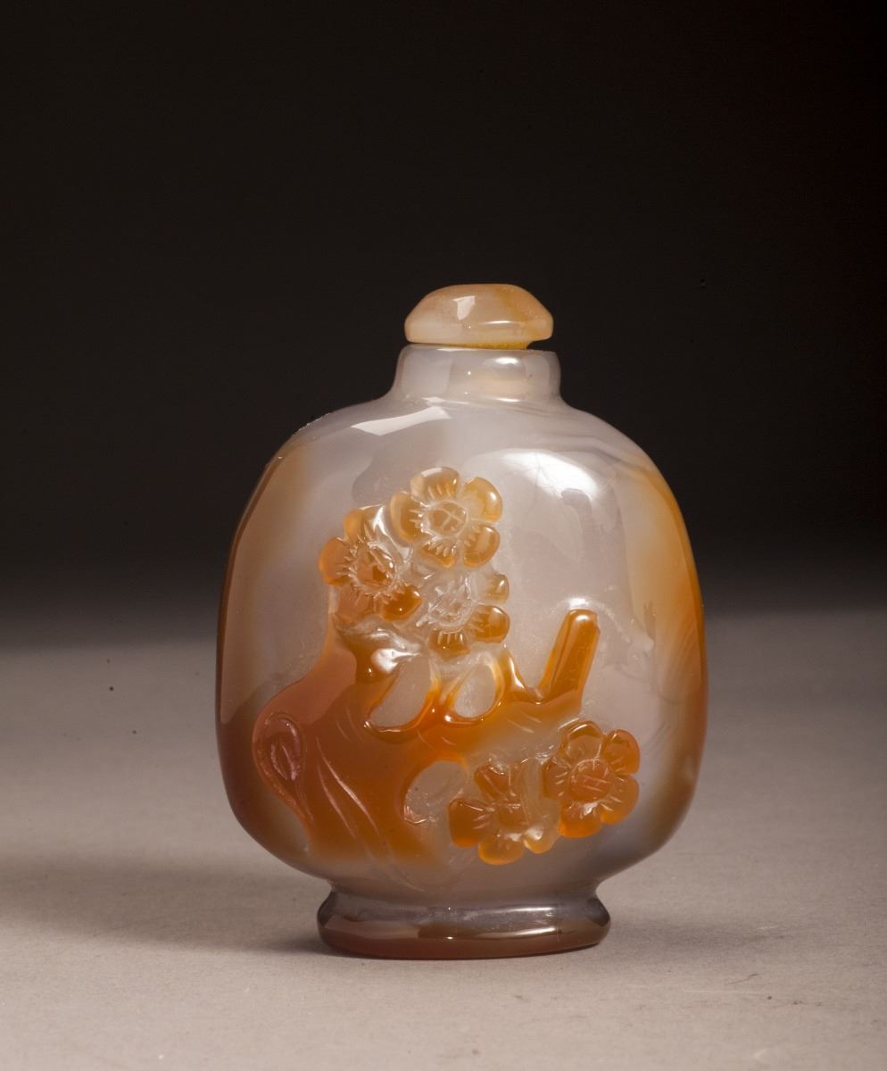 Within The Brown And White Tone Throughout, With Vivid Carved Flower Patterns At The Main Body.