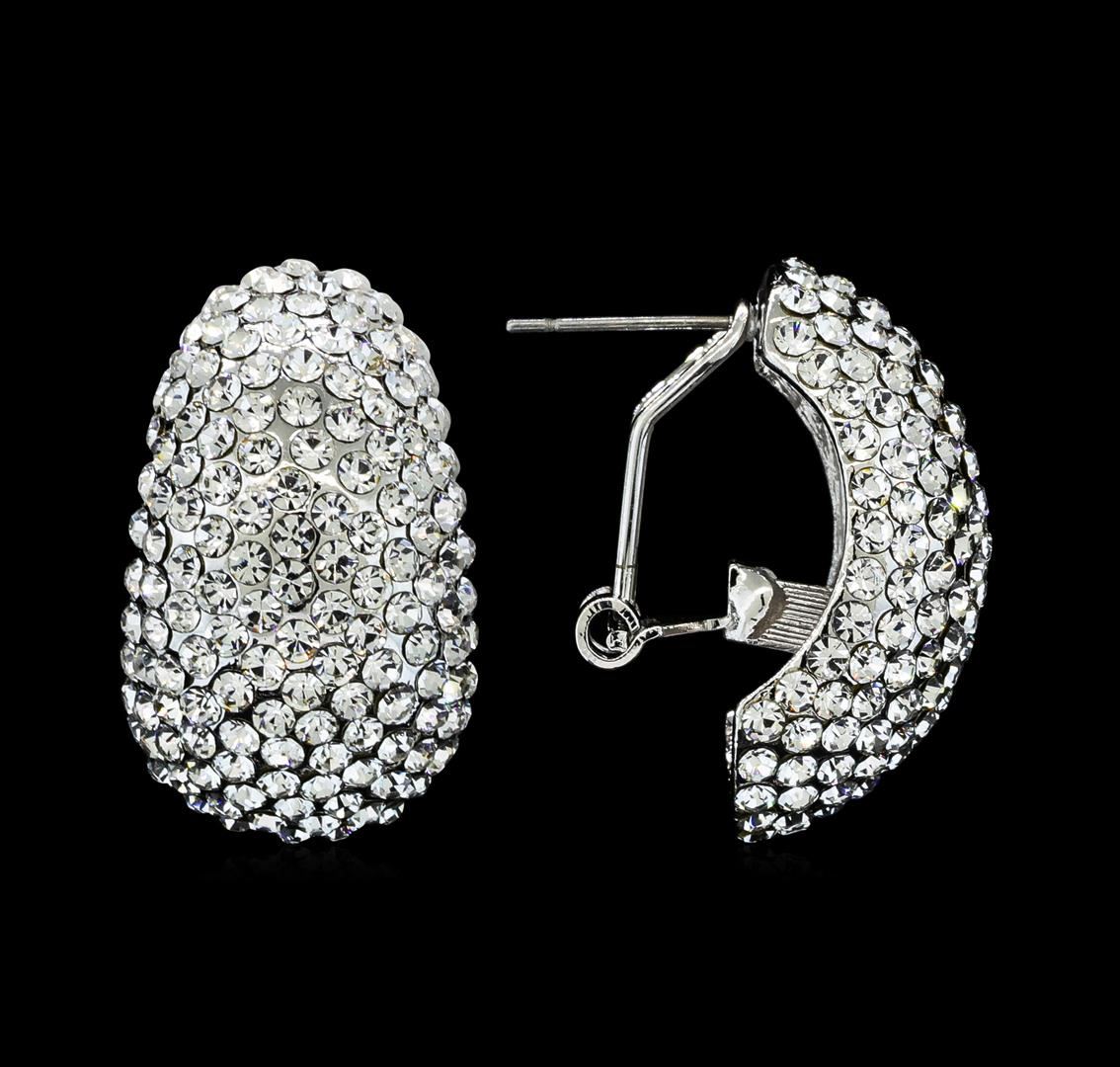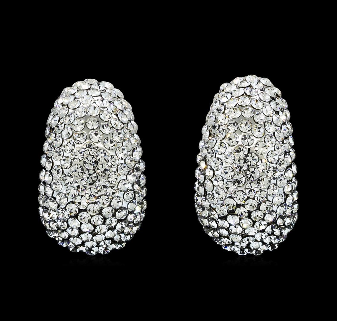 High end designer jewelry. 15x25mm Crystal Pave Earrings - Silver Plated. Silver Plated Metal. Silver. French Clip.
